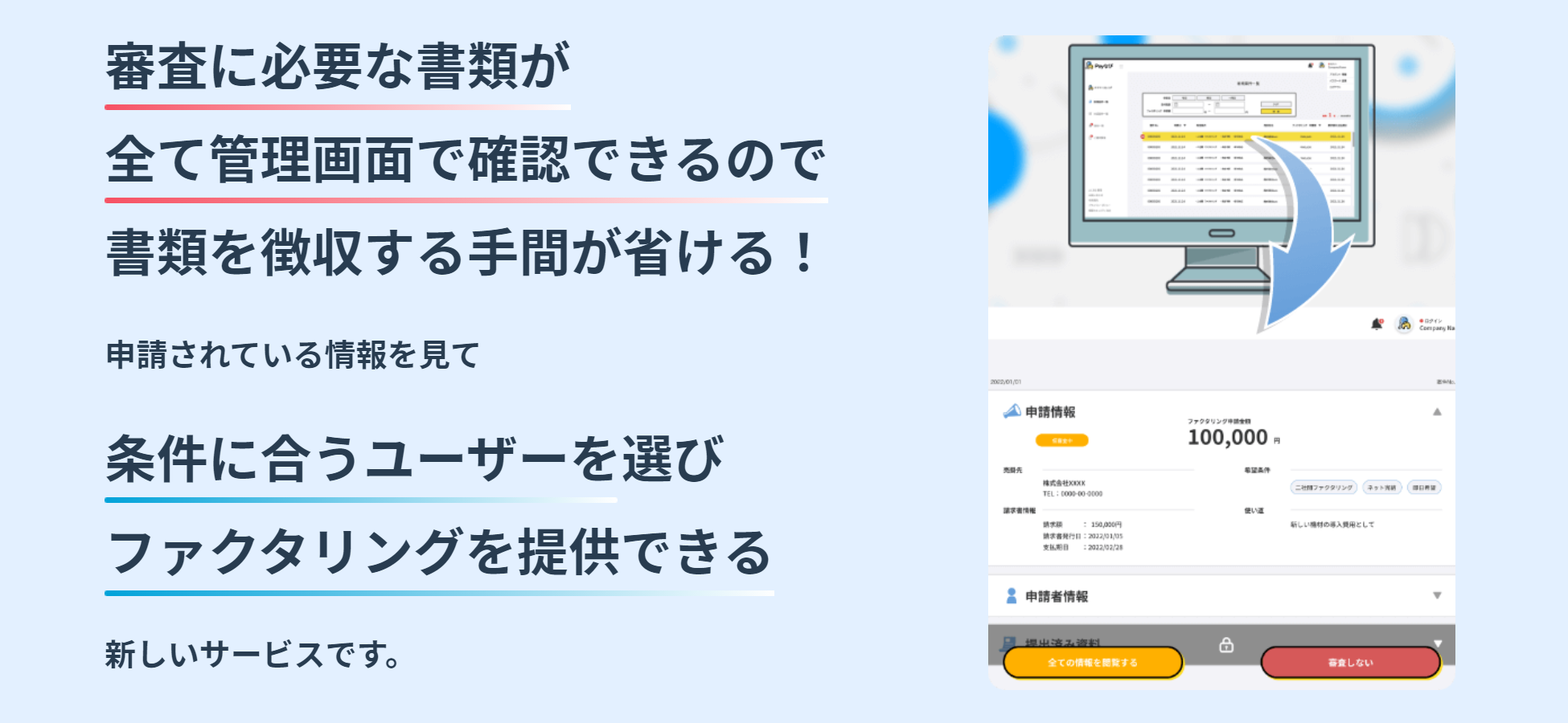 条件に合うユーザーのみを選んでファクタリングを提供できる、新しいサービスです。