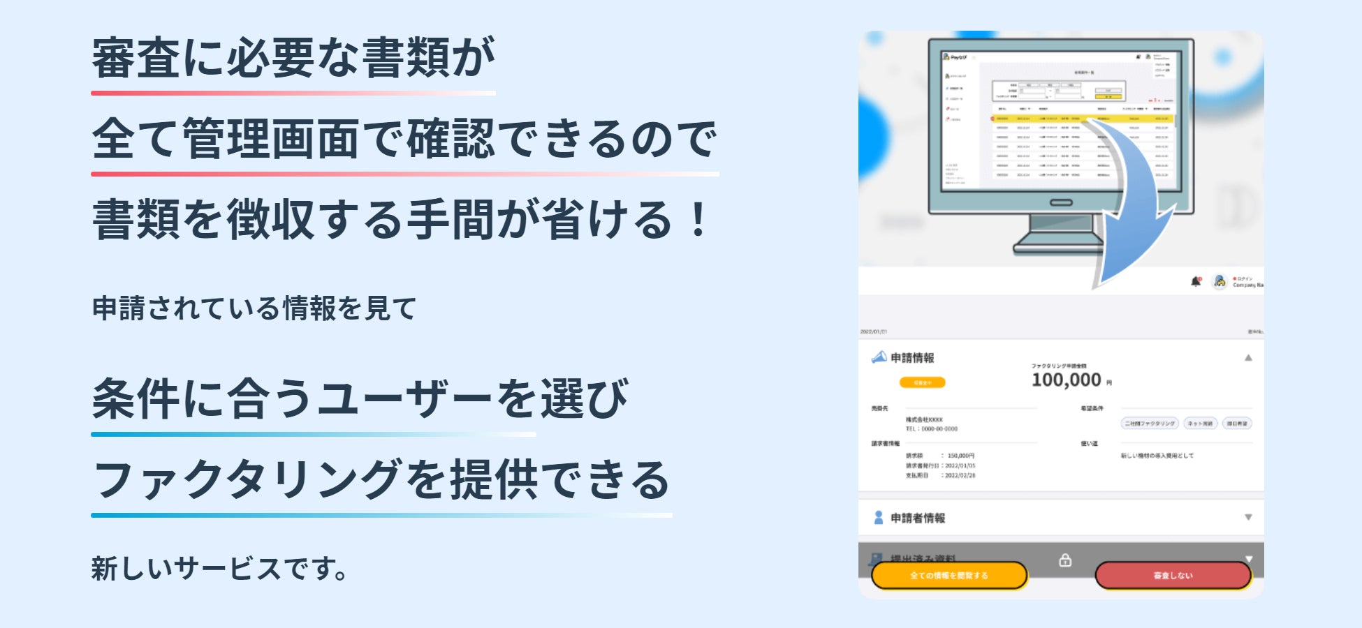 これらをテーマに、利用者とファクタリング会社の双方にメリットのある、新しいサービスが誕生しました。