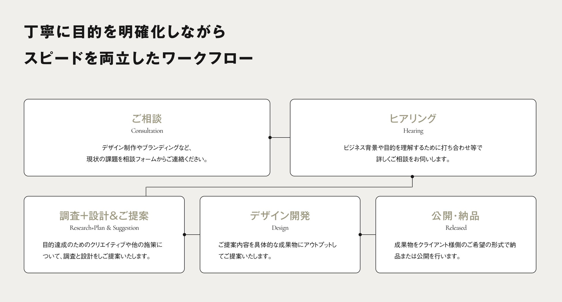 これまでコーポレートサイトやランディングページ、特設サイト、名刺やロゴ等のツール制作を中心に行ってきた事業を、よりお客様と真ん中からしっかり併走できるブランディングをベースとした事業へとシフトいたします。