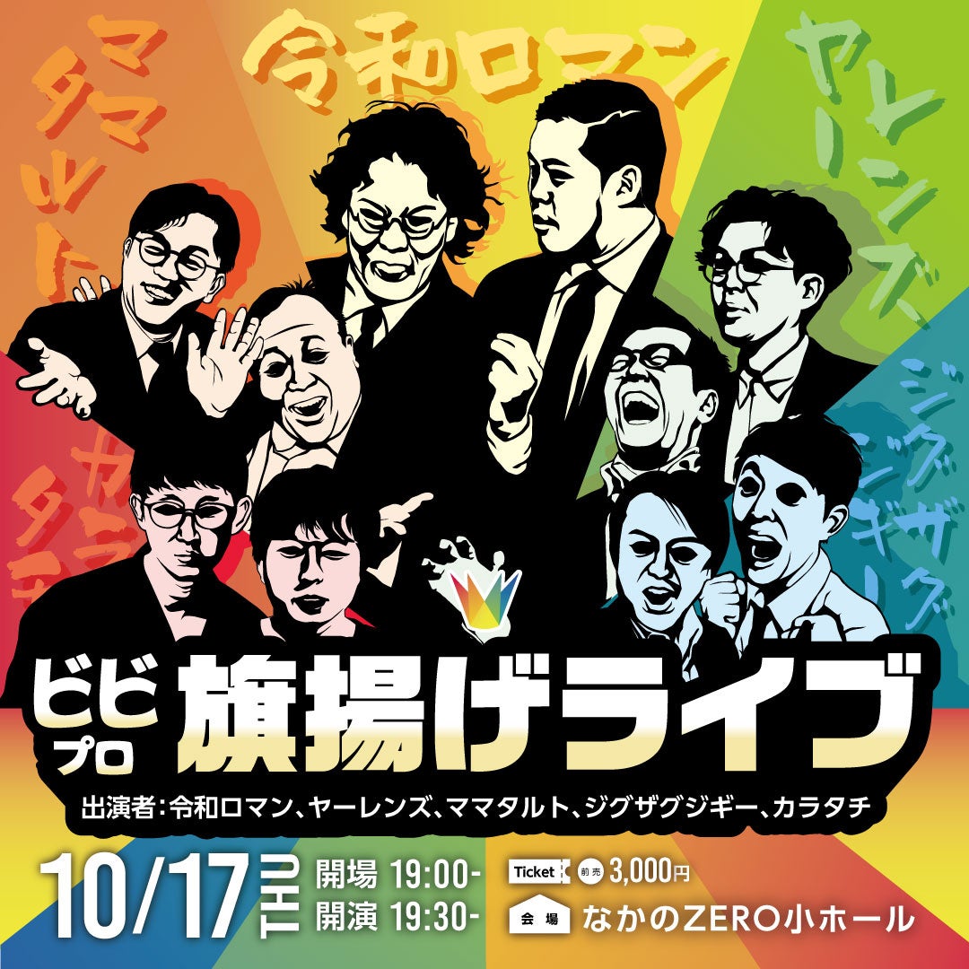 令和ロマン、ヤーレンズ、ママタルト、ジグザグジギー、カラタチが出演「ビビプロ旗揚げライブ」9/15(日)11:00〜FANYチケットにて先行チケット販売開始