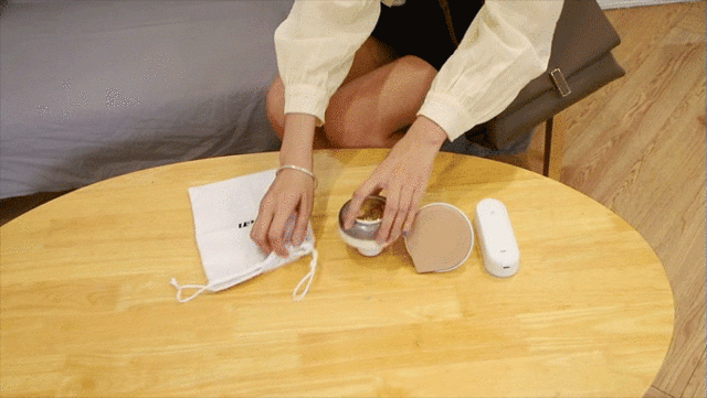 アイロンヘッドを本体のバッテリーから取り外し、毛玉取りヘッドと交換。電源スイッチを3秒長押しすると、すぐに使えます。