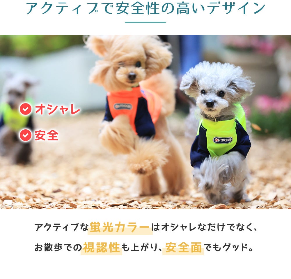 アクティブな蛍光カラーでビビットスポーツスタイルでお散歩での視認性も上がります。