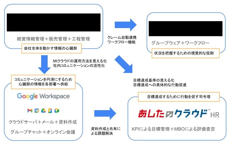 それ以外にもITツールとして、ワークフローや日報機能を備えた連携型ツール『MIツナガル』や、グローバルなグループウェアである『Google Workspace』など複数のITツールを登録しているため、デジタル化⇒DX化を進めたい印刷会社へのステップアップをサポートしています。