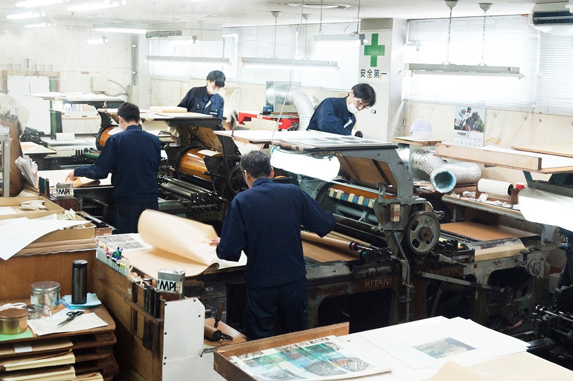 コロタイプは約170年前フランスで生まれた写真プリント技術で、明治時代に日本にもたらされました。すべてが熟練した職人による手作業で大変手間ひまのかかる技術で、現在コロタイプを継承するのは世界で唯一、京都の2社のみとなりました。中でも多色刷のカラーコロタイプは便利堂のみが有する技法です。