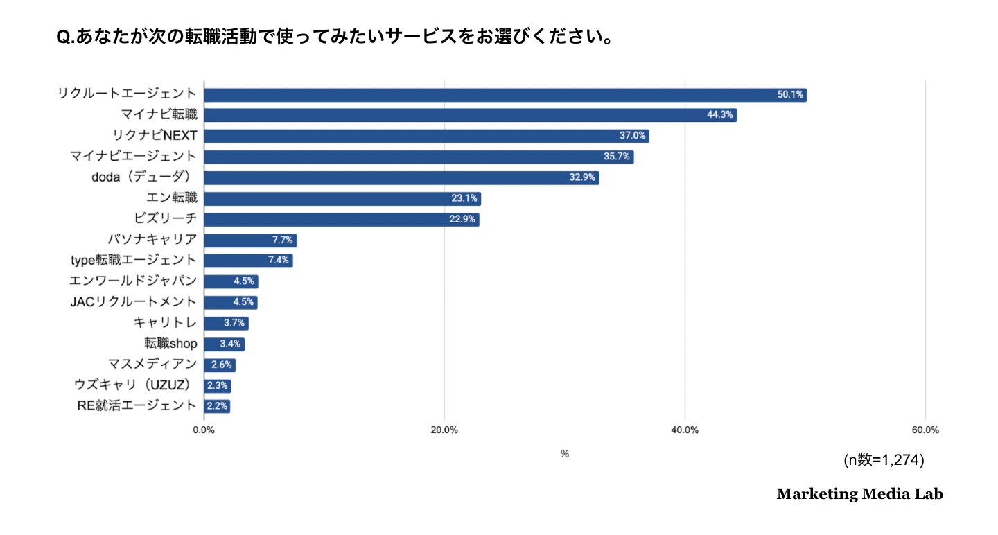 ・次の転職で使ってみたい転職サービスはリクルートエージェントが1位に。