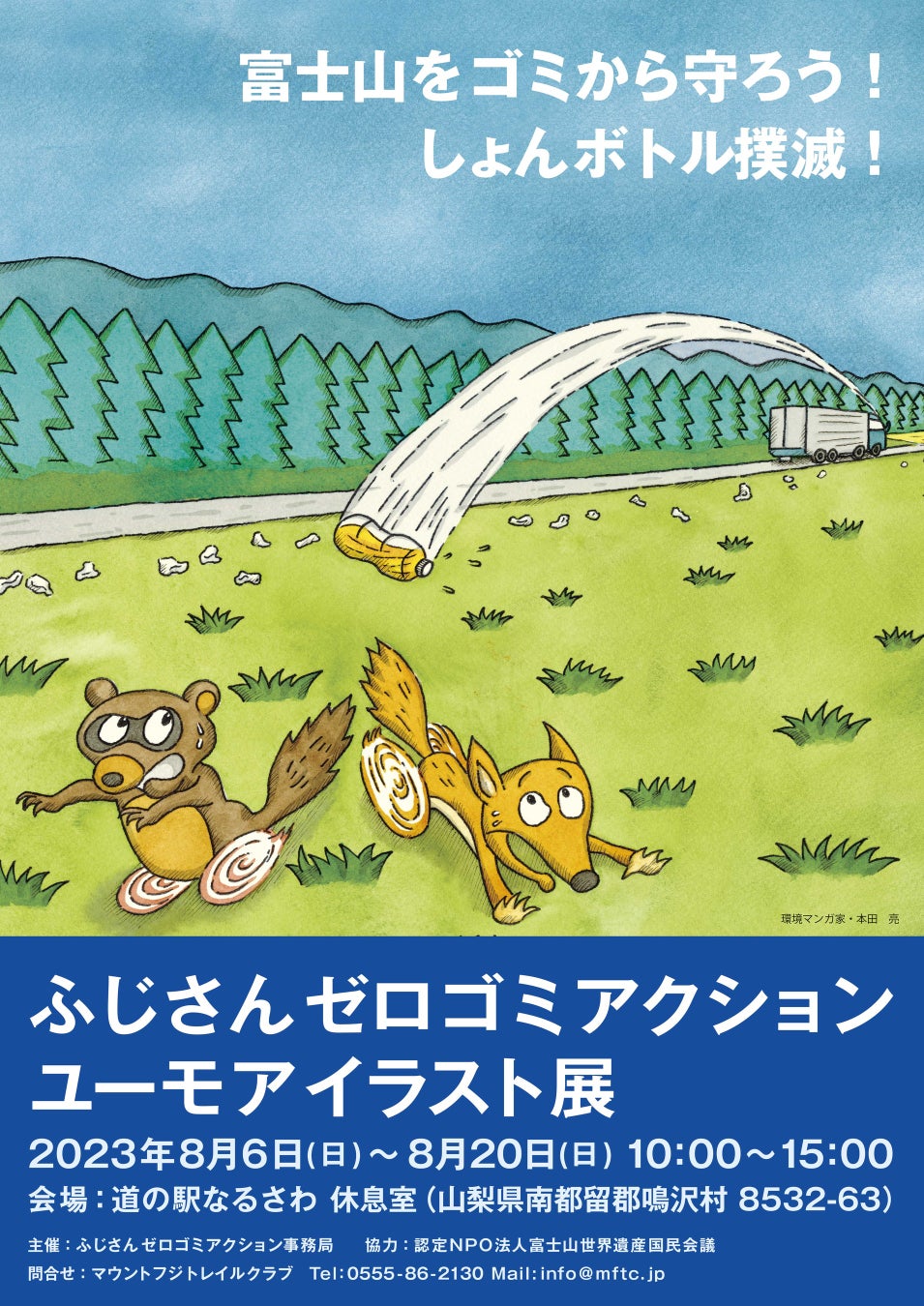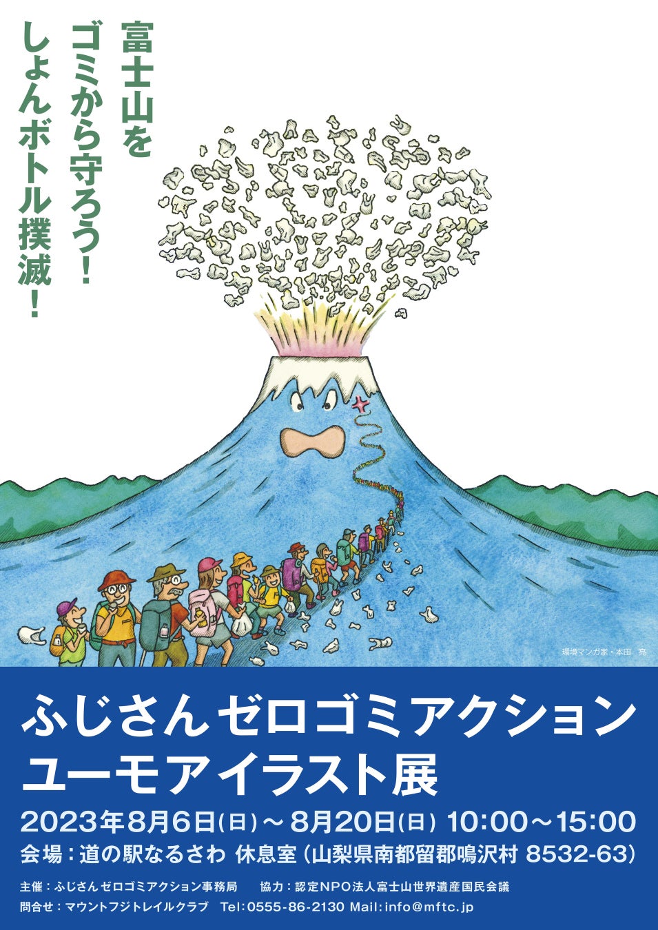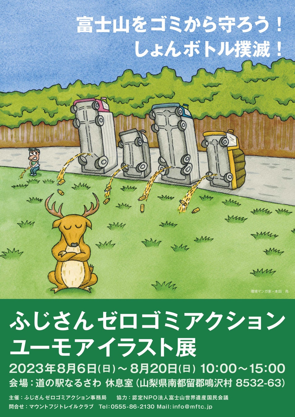 富士山をゴミから守ろう!しょんボトル撲滅!「ふじさんゼロゴミアクション ユーモアイラスト展」8月6日(日)~20日(日)開催