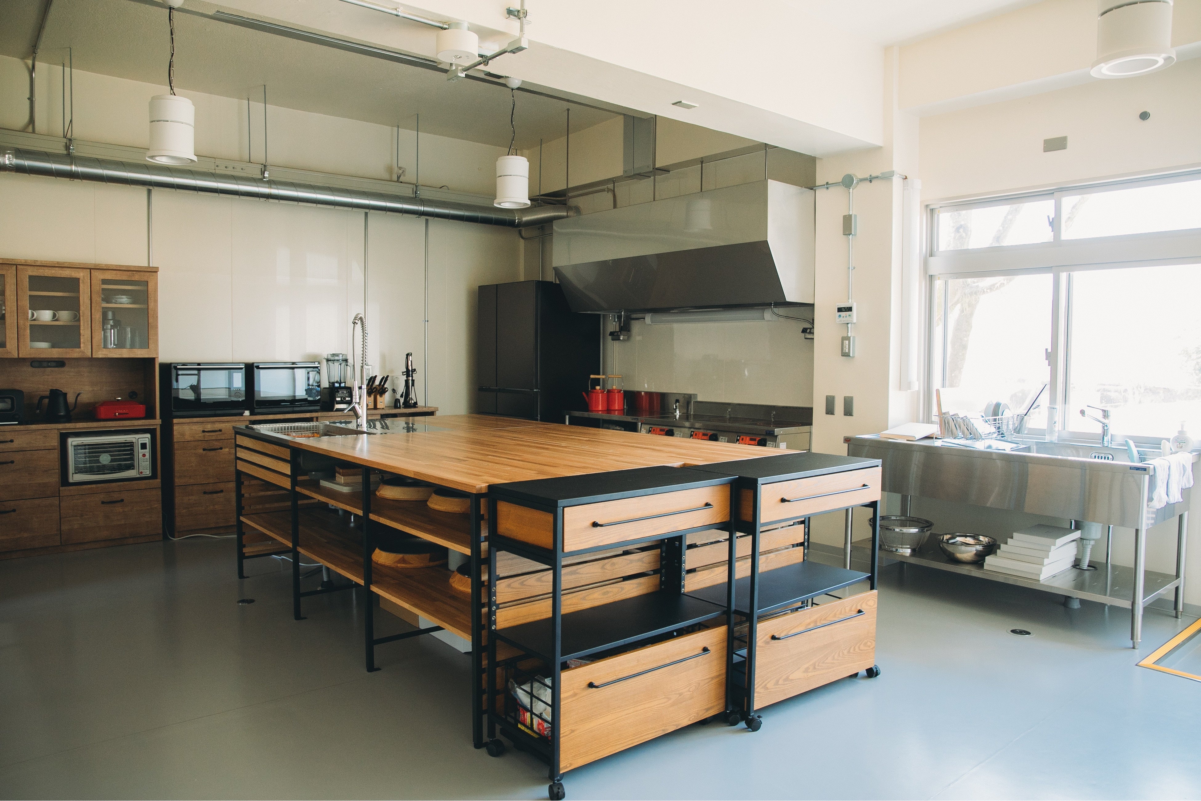 施設内には、レンタルキッチンも備えています。シンク、コンロ、調理器具、食器etc、食事を作って食べるために必要な道具はすべて揃っています。ワーケーション滞在期間中は、外食ばかりになりがち…。地元の食材を購入して、キッチンで調理するも良し。郷土料理をチームで作るプログラムも人気コンテンツとなっています。