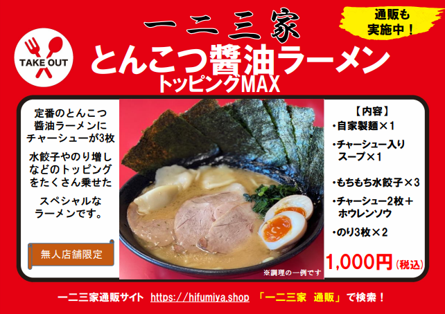 〜いつでも「一二三家」のラーメンをご自宅でお召しあがりいただけます〜