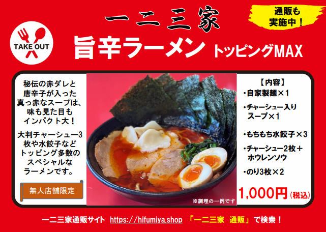 通販が人気の家系ラーメン店「ラーメン一二三家(ひふみや)」が 2022年3月15日に365日24h営業の無人販売所