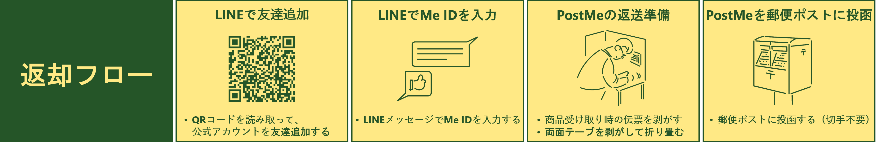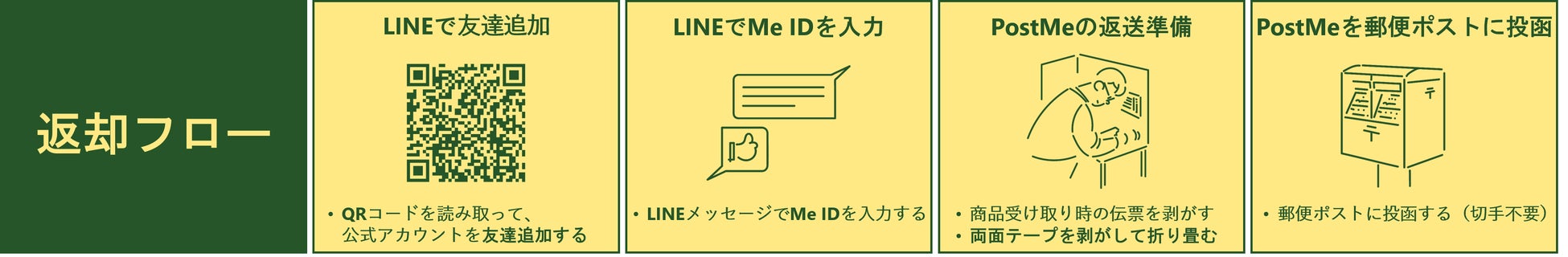 PostMeを受け取ったネットショップ利用者にご協力いただき、4ステップで当社へご返送していただきます。
