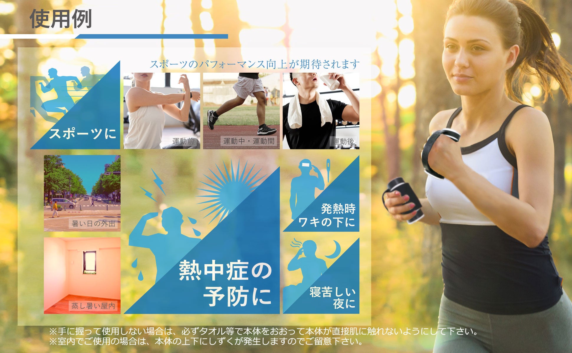 使い方はとっても簡単。冷凍庫で冷やした後、付属のカバーをつけて手に握るだけ。手の平を冷やすことで深部体温が下がり、熱中症を予防してくれます。正常な体温を保つことで、スポーツのパフォーマンス向上,寝苦しい夜の安眠促進にも期待されます。