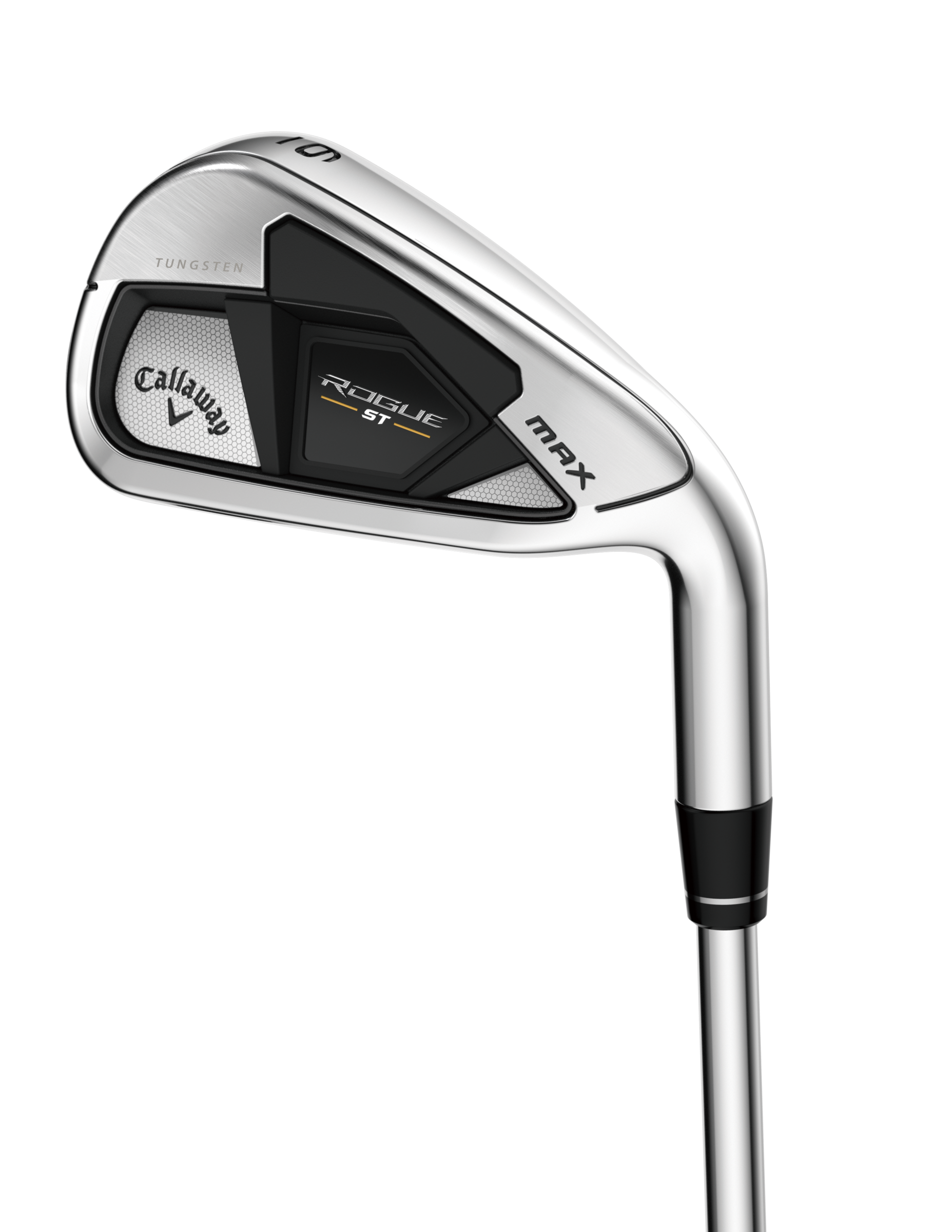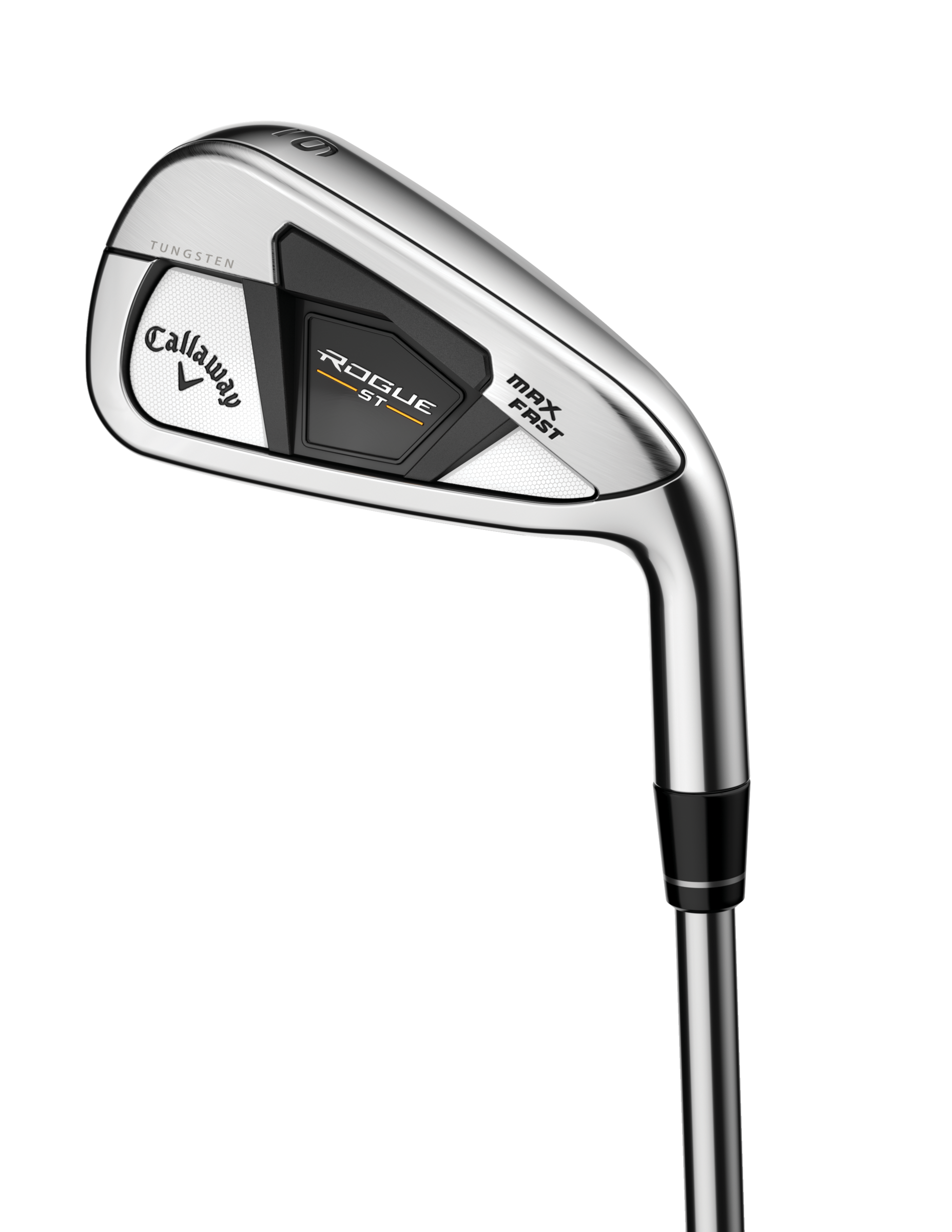 ROGUE STアイアンシリーズにおける進化も、多方面にわたっています。AI設計のFLASHフェースSS22では、モデル別、ターゲット別にさらなる最適化がなされましたが、スピードの追求はこれで終わりません。フェースカップの素材にも着目し、より高強度のカーペンター450を採用。貪欲に、ボール初速の向上を図りました。また、定番となったテクノロジー、ウレタン・マイクロスフィアを増量。フェース裏側のかなりの高さまで覆うようになり、ソフトな打感を得られる範囲が拡大しました。もちろん、ユーティリティ同様にプレシジョン・タングステンウェイトも搭載され、寛容性やボールの上がりやすさがいっそう高まっています。ラインアップは、4種類。「ROGUE ST MAXアイアン」「ROGUE ST PROアイアン」「ROGUE ST MAX OSアイアン」「ROGUE ST MAX FASTアイアン」です。