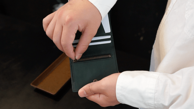 財布を開かずに、瞬時にスライドで出し入れ可能
