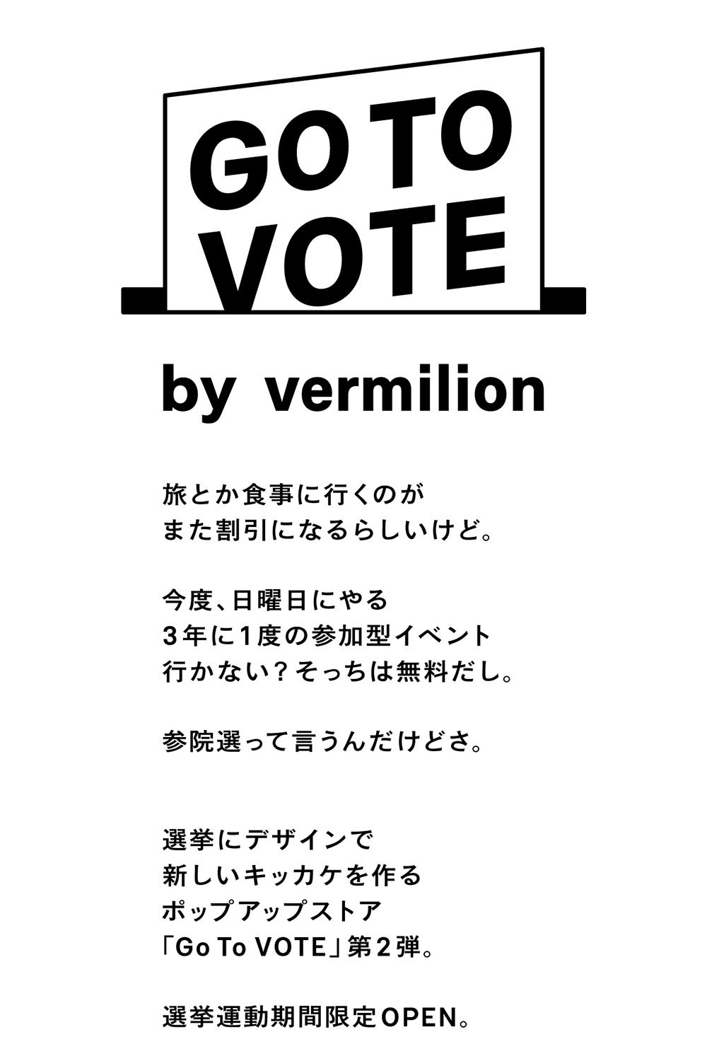 「Go To VOTE」は、vermilionの新たなプロジェクトとして、選挙に新しいキッカケを作ることを目的としたポップアップストア。2021年の衆議院選の選挙運動期間にオープンし、多数のメディアに掲載されました。