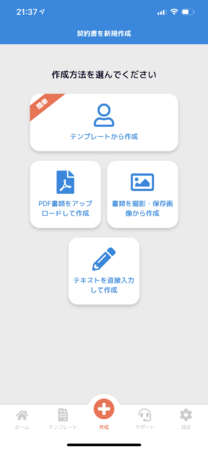 - 書類作成画面・・・登録済みのテンプレートやPDFの他、写メやその場でテキスト入力をして文書を作成することも可能です