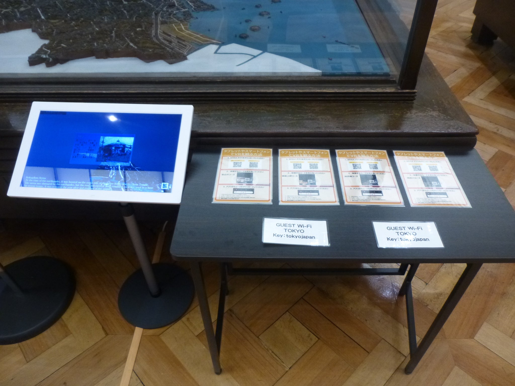 VRコンテンツは、都立横網町公園の復興記念館に展示されている復興大模型に並列に展示しているアクセスポイントから、スマートフォンやタブレットで体験することができます。
