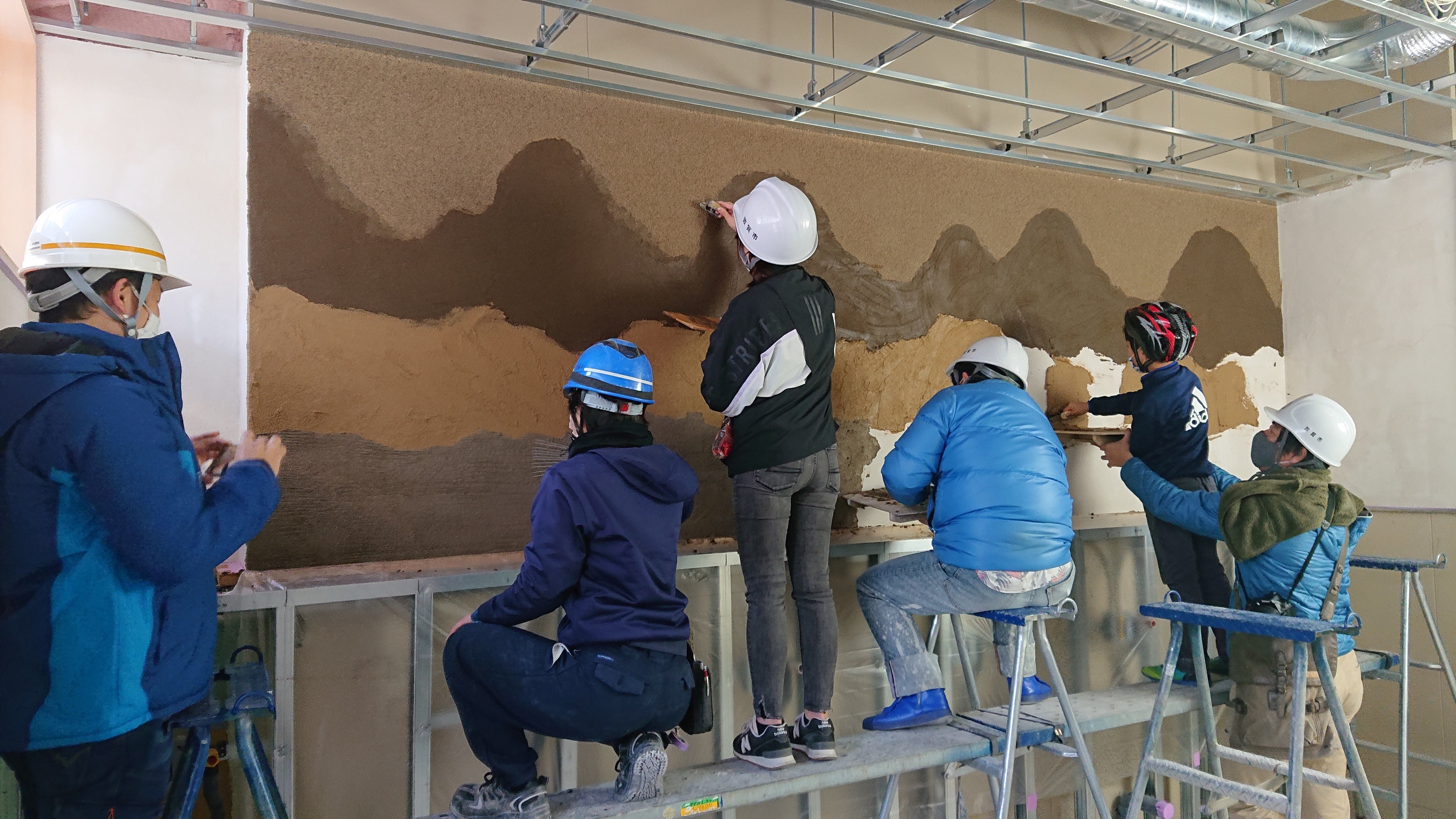 「神宮前ぽっぽ」開園に先立ち、子どもたちの園舎を彩るため「土壁ワークショップ」を開催いたします。使用する土壁の原料は神宮前ぽっぽ、気比神宮・気比の松原から採取した土です。ここでしか作れない土壁となります。土壁を塗る際には講師の指導の下、入園予定の園児・保護者等が専用のコテなどを使って園舎の壁に塗り付け仕上げていきます。