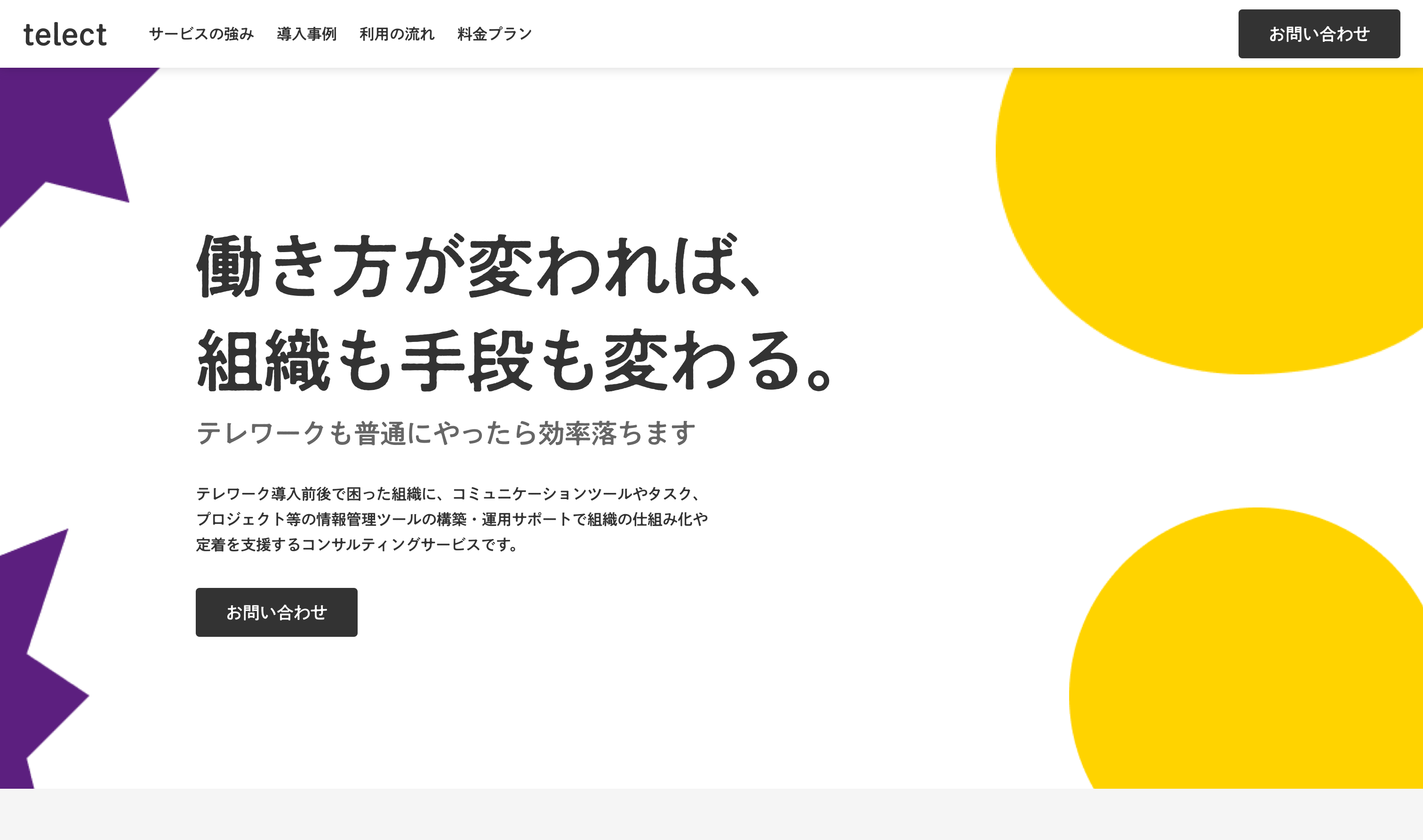そこで私たちは、4年間の試行錯誤と支援経験をもとにtelect推奨ツールの初期構築と運用のサポートをはじめ、導入するだけではない、さらなる組織の仕組み化や定着化をサポートをするために「telect」をスタートするに至りました。