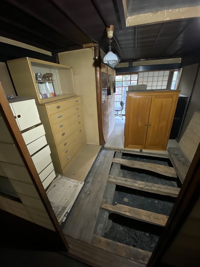 床を支える「大引き」、むくり天井や天窓などをそのまま活用することで歴史の風情を残しつつ、使われないまま老朽化が進んでいた書院や和室をリノベーション。