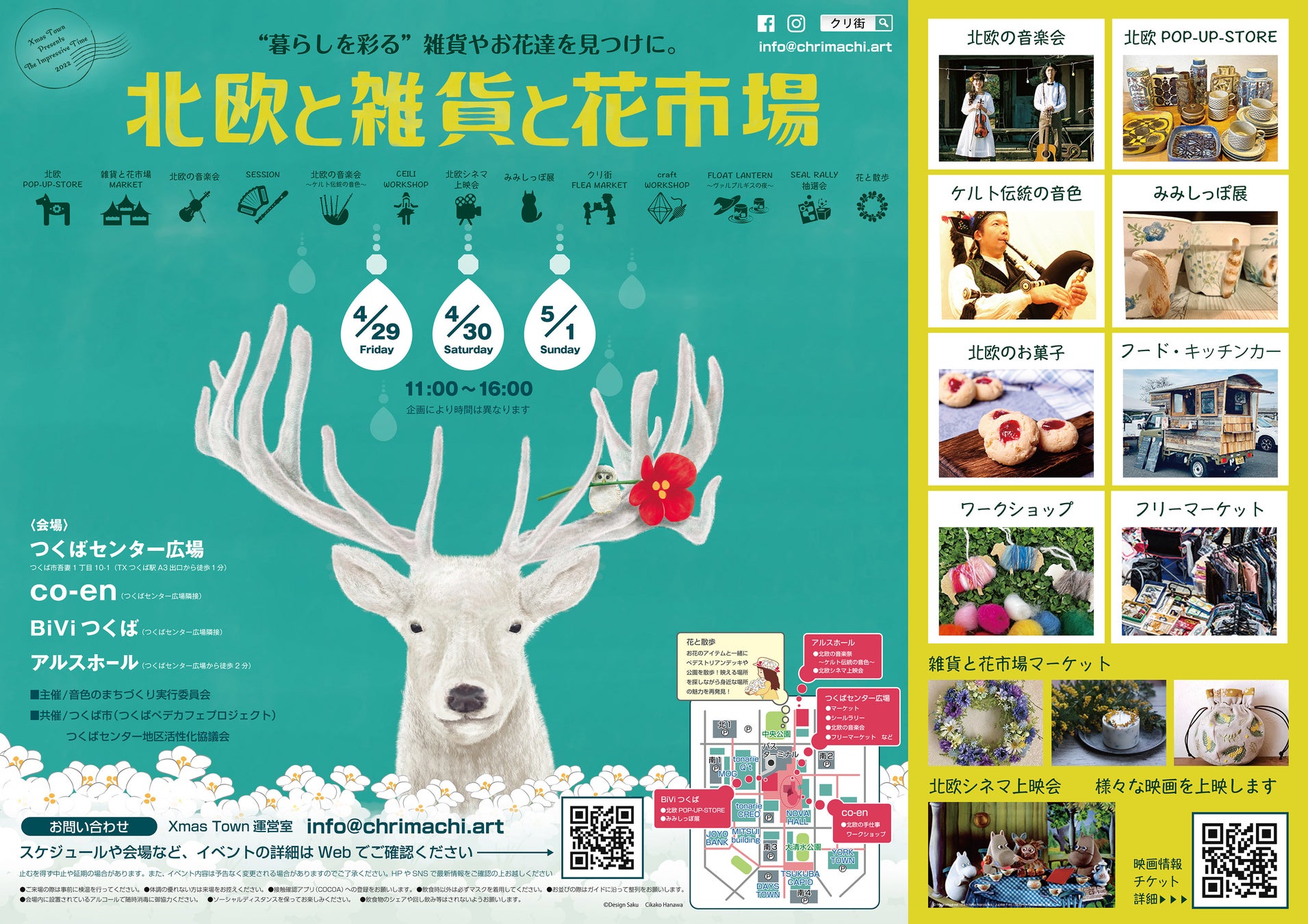 北欧POP-UP-STORE・雑貨と花市場マーケット・みみしっぽ展・北欧の音楽会・演奏会「ケルト伝統の音色」・クリ街フリーマーケット・シールラリー&抽選会・北欧のお菓子販売を開催します