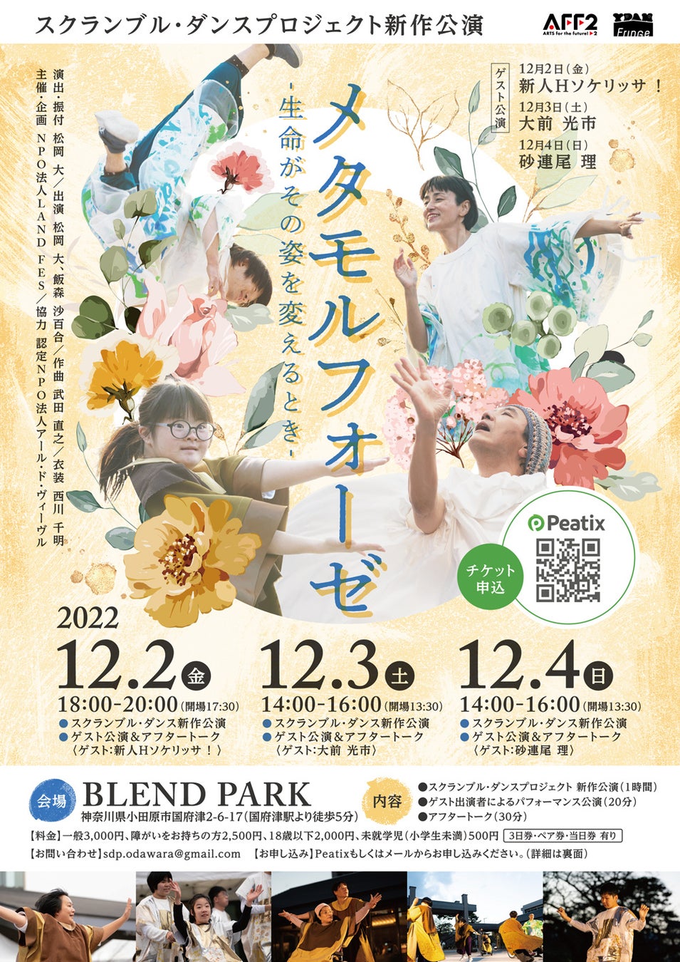 NPO法人LAND FESがスクランブル・ダンスプロジェクト新作公演『メタモルフォーゼ ―生命がその姿を変えるとき― 』 を12月2日〜4日にかけて小田原市国府津のBLEND PARKにて上演します。