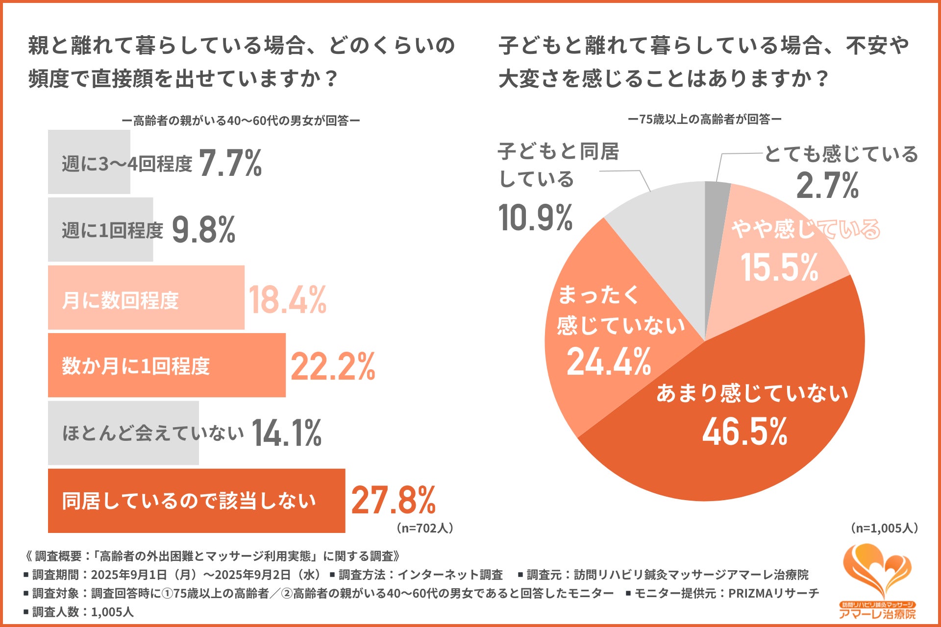 親と会うのは「数か月に1回程度」が最多。不安を抱える高齢者は少数派だが、約7割が「施術+見守り」に安心感ありと回答