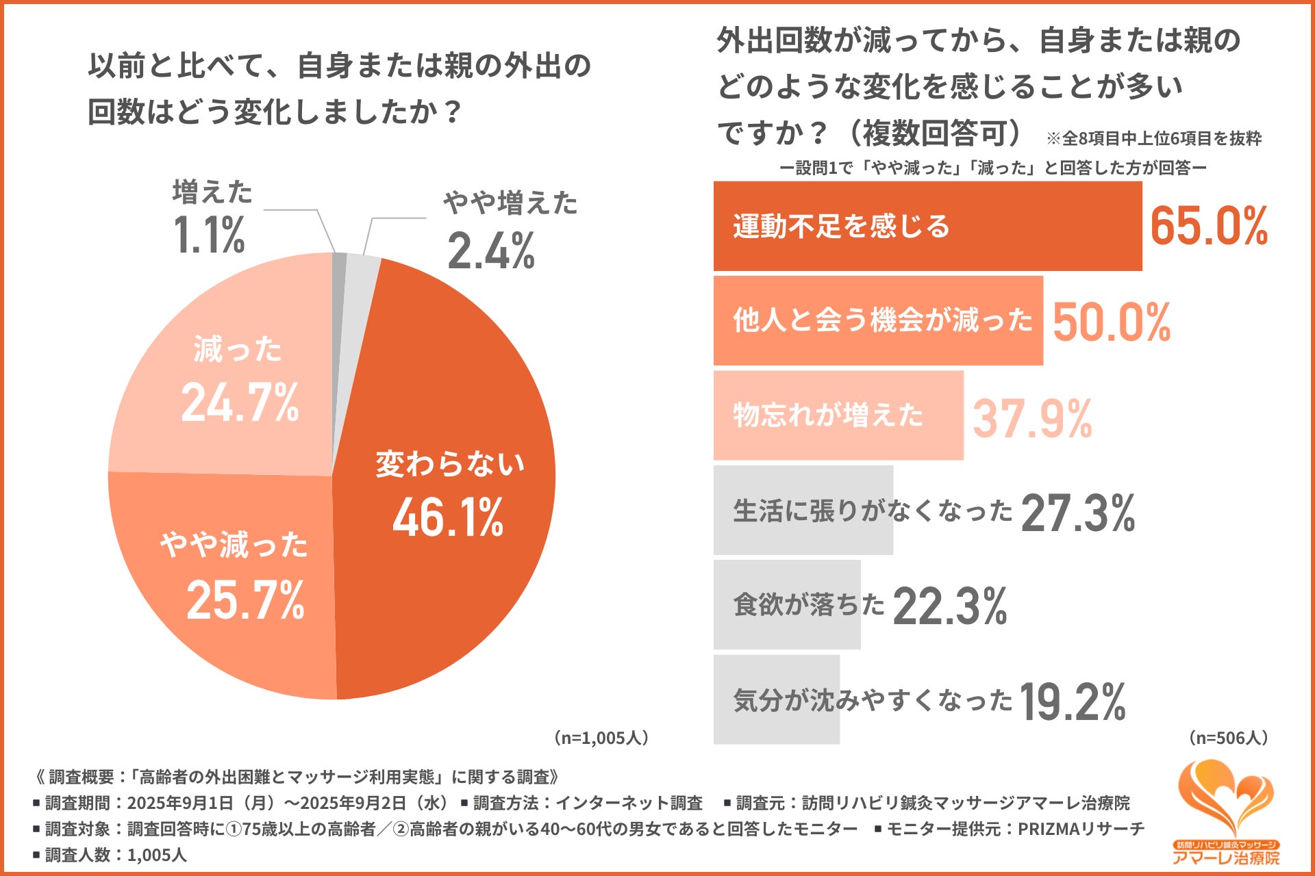 半数以上が外出回数の低下を実感。背景に「体調不良」「天候不順」「移動の不便さ」