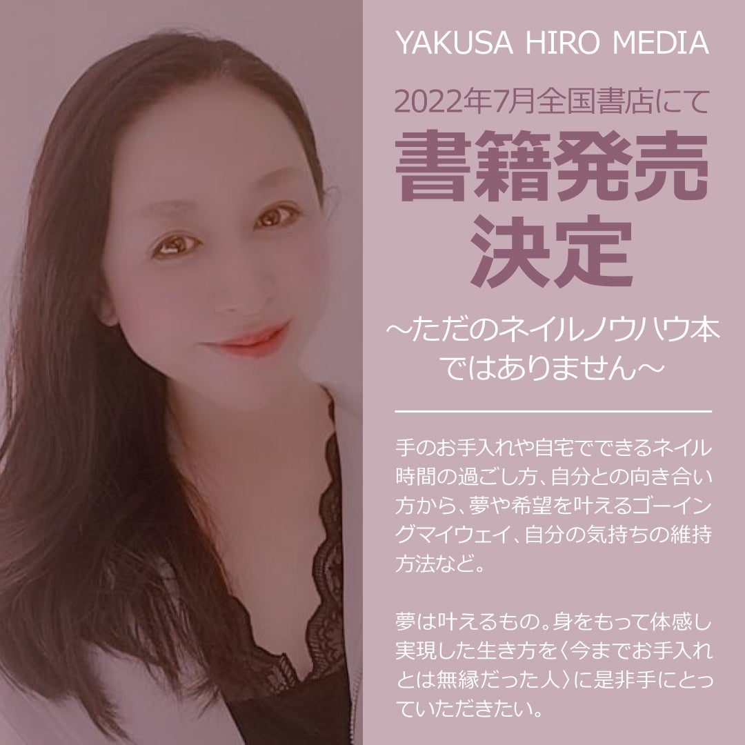 ●著書紹介:やくさひろ。幼少期のいじめ体験を受け、自分を癒すために5歳より手のお手入れの研究を行う。ネイルケア、ジェルネイル企画製造、ブランディング、など「手のお手入れ」にまつわる全ての業務を遂行。日本・海外向けにネイルデザイン検定を立上げ、要項制作全て担当。アートを楽しむ、心に余裕を持つという過去にない大胆なネイル検定が爆発的に注目を集め、国内のみならず中国、韓国、シンガポール、アメリカからも大勢の生徒が集まる。