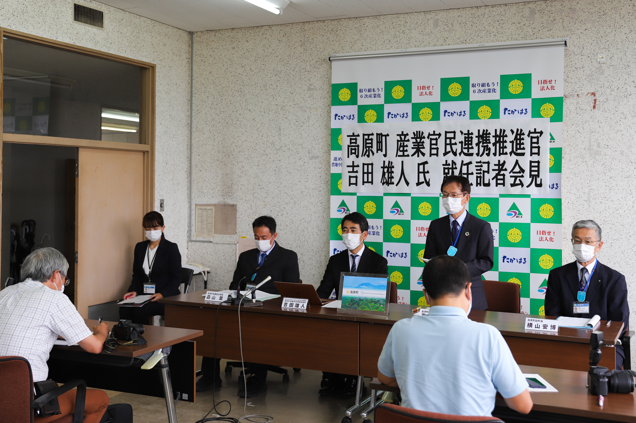 「全国的に人口減少が進む中、平成22年に約10,000人だった人口が令和3年には約8,500人にまで減少していまして、これからのまちづくりをどのように進めていくかが大きな課題です。現在、「高原町の資源と魅力を生かした協働のまちづくり」を進めるという考えのもと、地域商社の設立に向けて準備を進めています。吉田雄人産業官民連携推進官には、まずはこの地域商社の立ち上げに向けてご支援いただきますとともに、企業版ふるさと納税の推進、ゆくゆくは本町が抱えている地域課題の解決等に向けた取り組みにもご尽力いただきたいと考えています。」