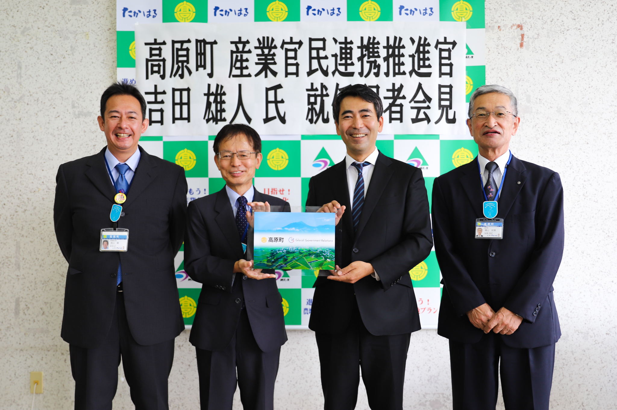 良質で戦略的な官民連携の手法を用いて地域課題解決を進めるGlocal Government Relationz株式会社(本社:神奈川県横須賀市、代表取締役吉田雄人、以下「GGR社」)は、宮崎県高原町(町長:高妻経信)と「地域活性化企業人にかかる業務委託協定書」を締結致しました。10月8日、町長同席のもと記者発表を行いましたのでお知らせ致します。合わせて高原町役場における「産業官民連携推進官」として非常勤特別職の委嘱を受けました。この「官民連携推進官」という職名は全国の自治体では初めてのこととなります。