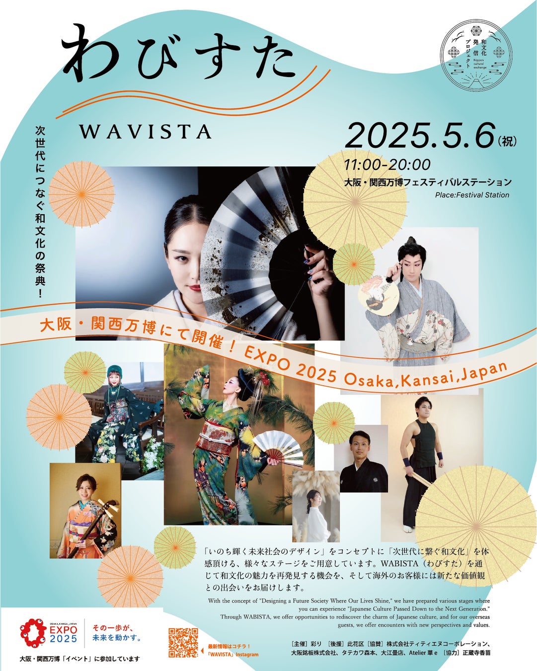 堺を拠点に、和文化の魅力を発信する「和文化発信プロジェクト」を展開する彩り(代表:足永美樹)は、大阪・関西万博会場内のフェスティバル・ステーションにて、和文化の祭典「WAVISTAーわびすたー」を令和7年5月6日(火・祝)に開催する。