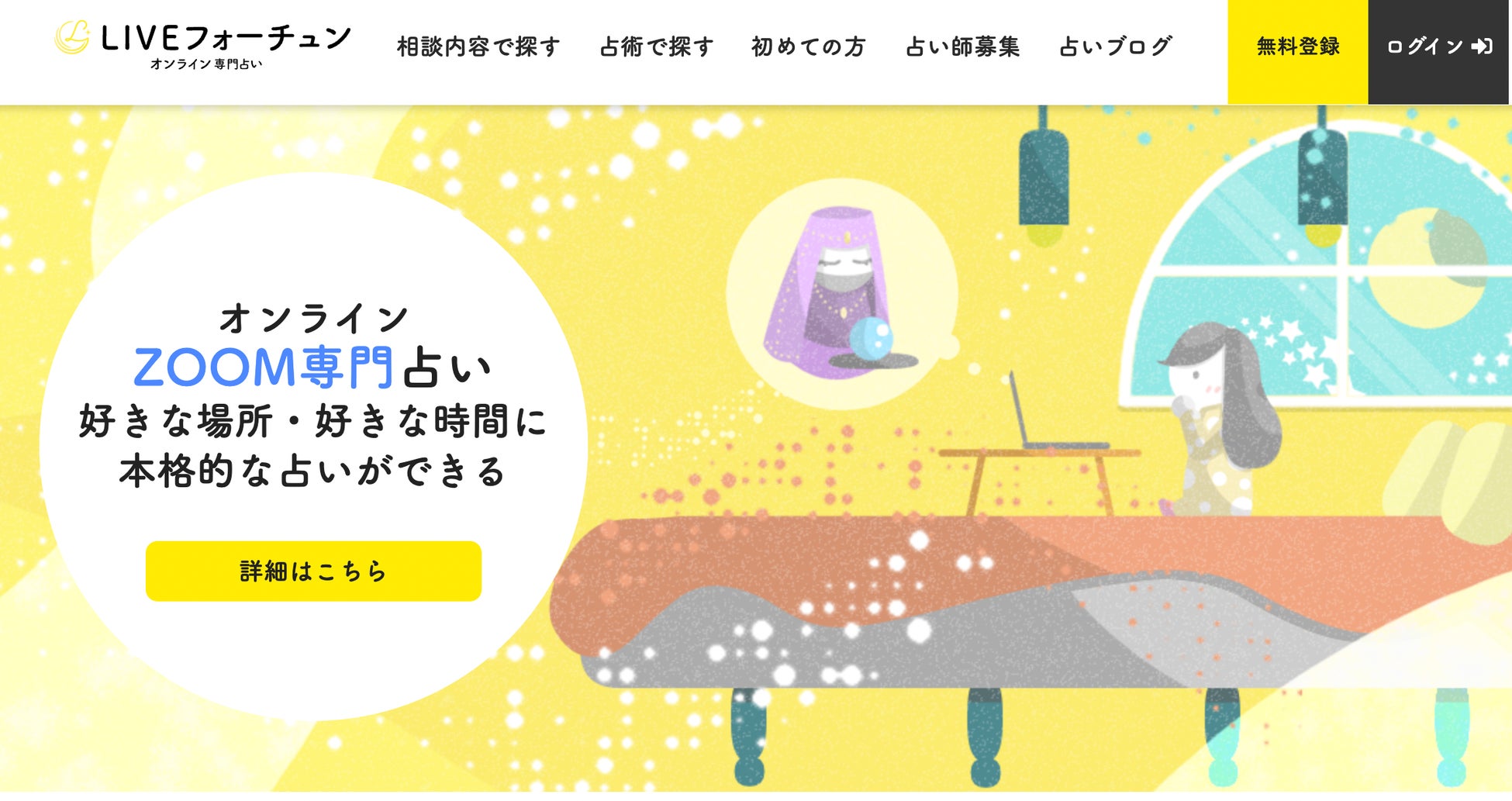 「LIVE フォーチュン」は株式会社IIP(所在地:大阪府大阪市、代表取締役:牧山 雄樹)が運営するZoom専門のオンライン占いサイトです。