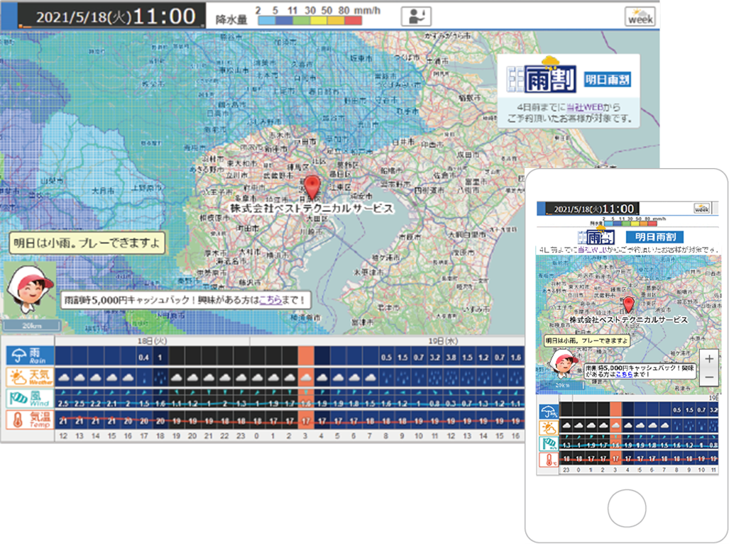 雨の日のキャンセル抑制と自社予約サイトへの誘致に効果