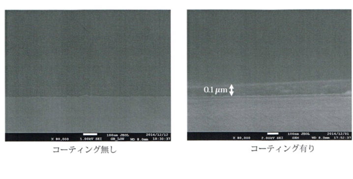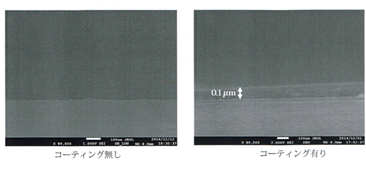 また、名古屋大学にて電子顕微鏡で皮膜画像(0.0001㎜(0.1μm))の撮影に成功しました。そういったエビデンスをしっかりと取得した安心してお使い頂ける製品開発をしています。