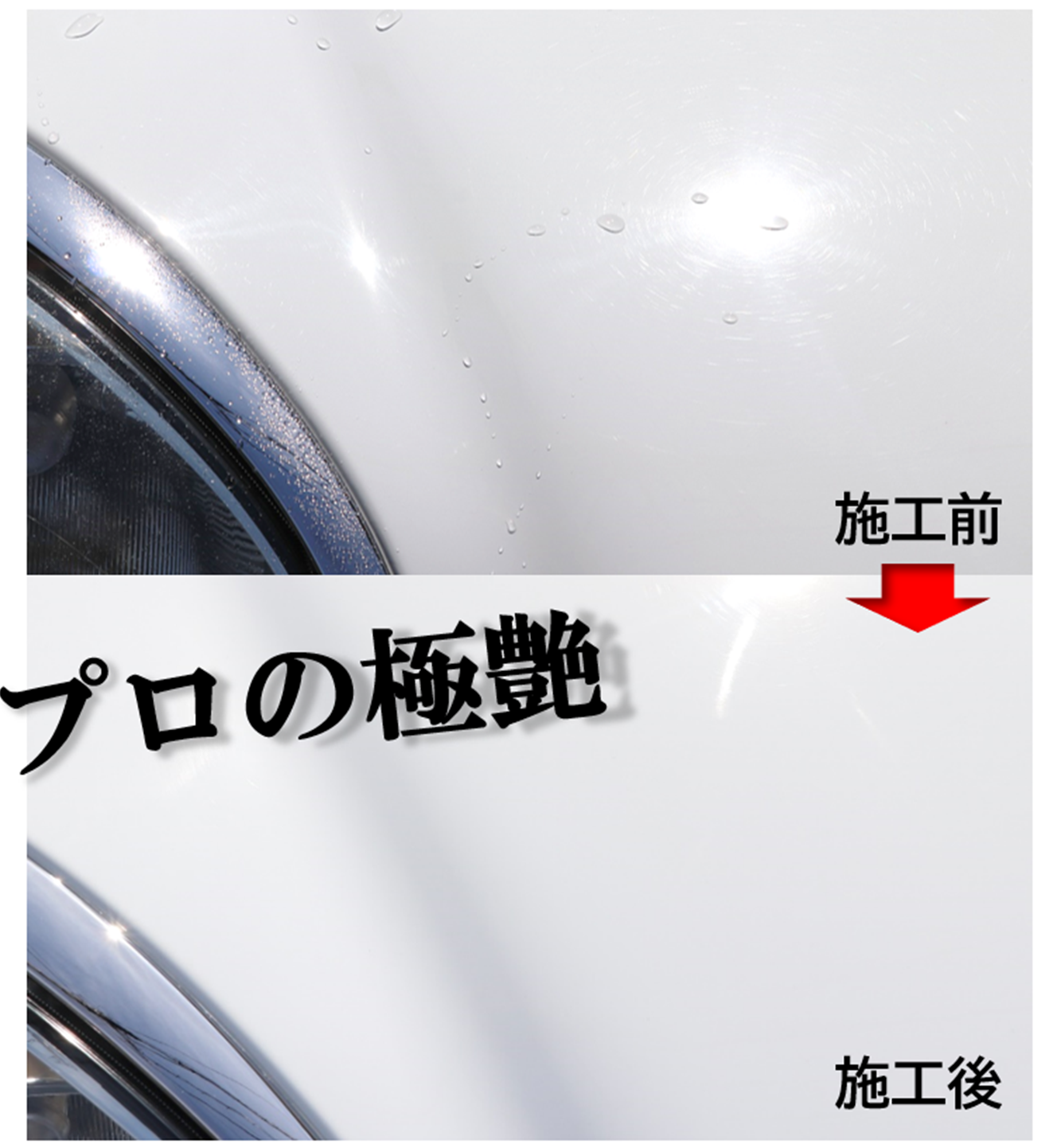 今までのガラスコーティングの課題点は、プロにしか施工が出来ないように複雑な施工工程を組んだ製品しか世の中に出回っていなかった点です。専用のエアーブラシが必要であったり、シングルアクションのバフ研磨が必要だったりとプロにしか出来ない特殊専門性の高い技術が要求されていました。しかし「ガラスの雫~極み~」はそんな複雑な仕組みを一切取り除き、本格的なガラスコーティングを失敗なく万人が施工できるDIY型本格ガラスコーティング剤です。