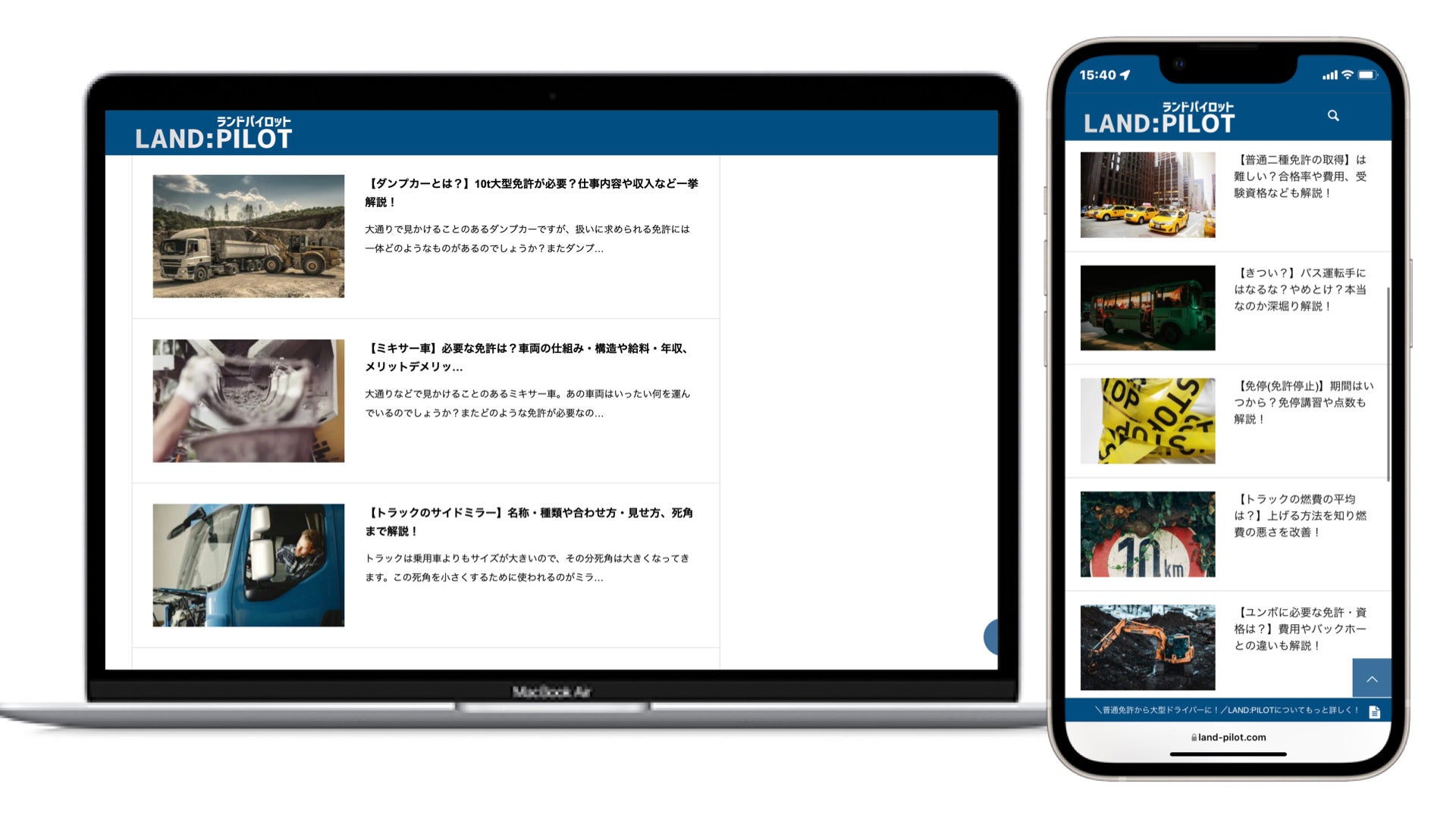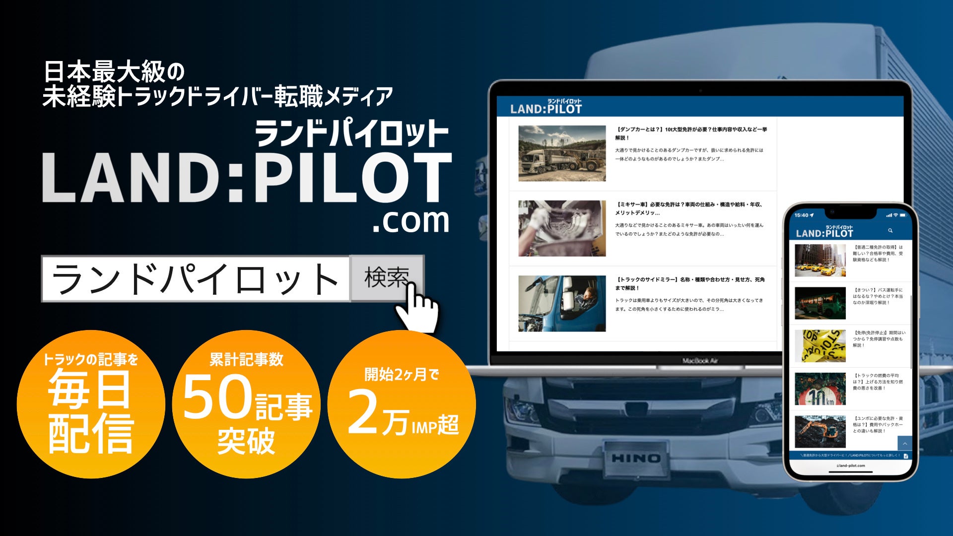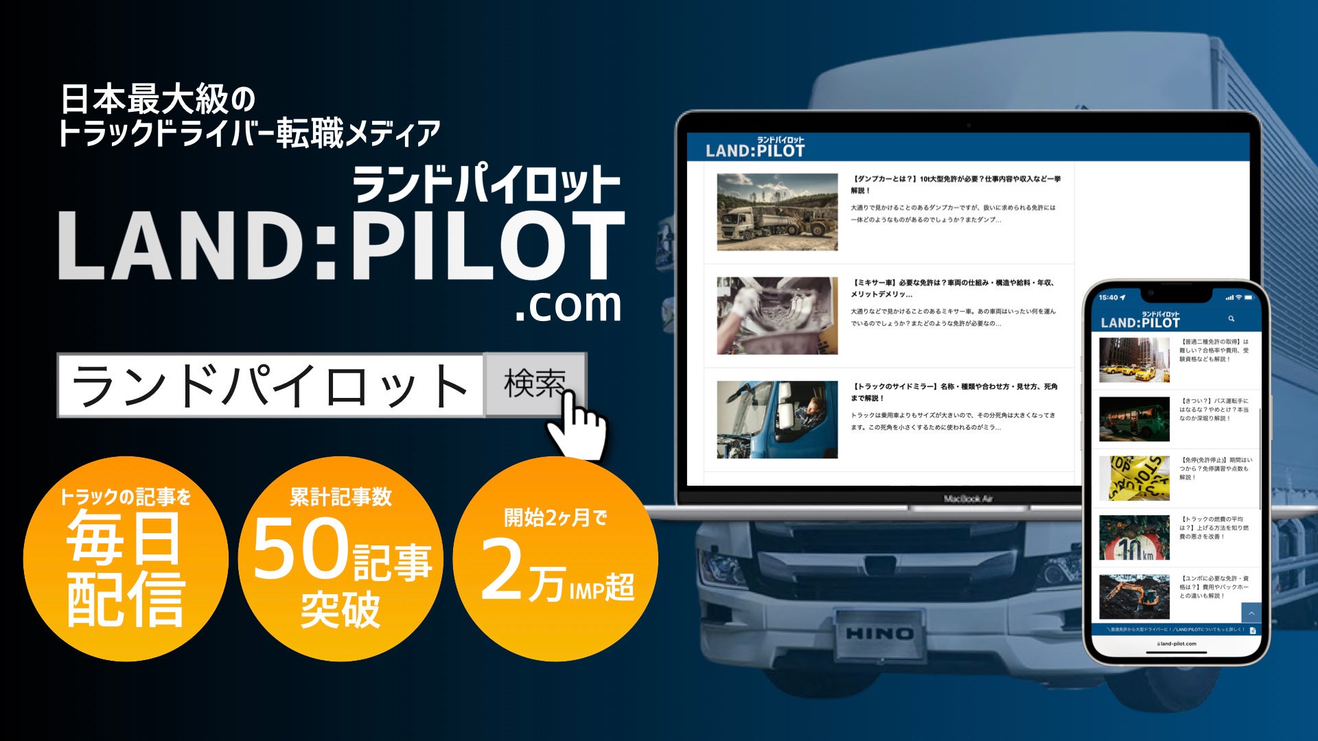 『LAND-PILOT.com』(ランドパイロットドットコム)は、日本最大級の未経験者向けトラックドライバー転職メディアです。現役トラックドライバー・トラック愛好家・未経験からトラックドライバーを目指す方向けに、様々なカテゴリから良質で確かな情報を毎日お届けしています。