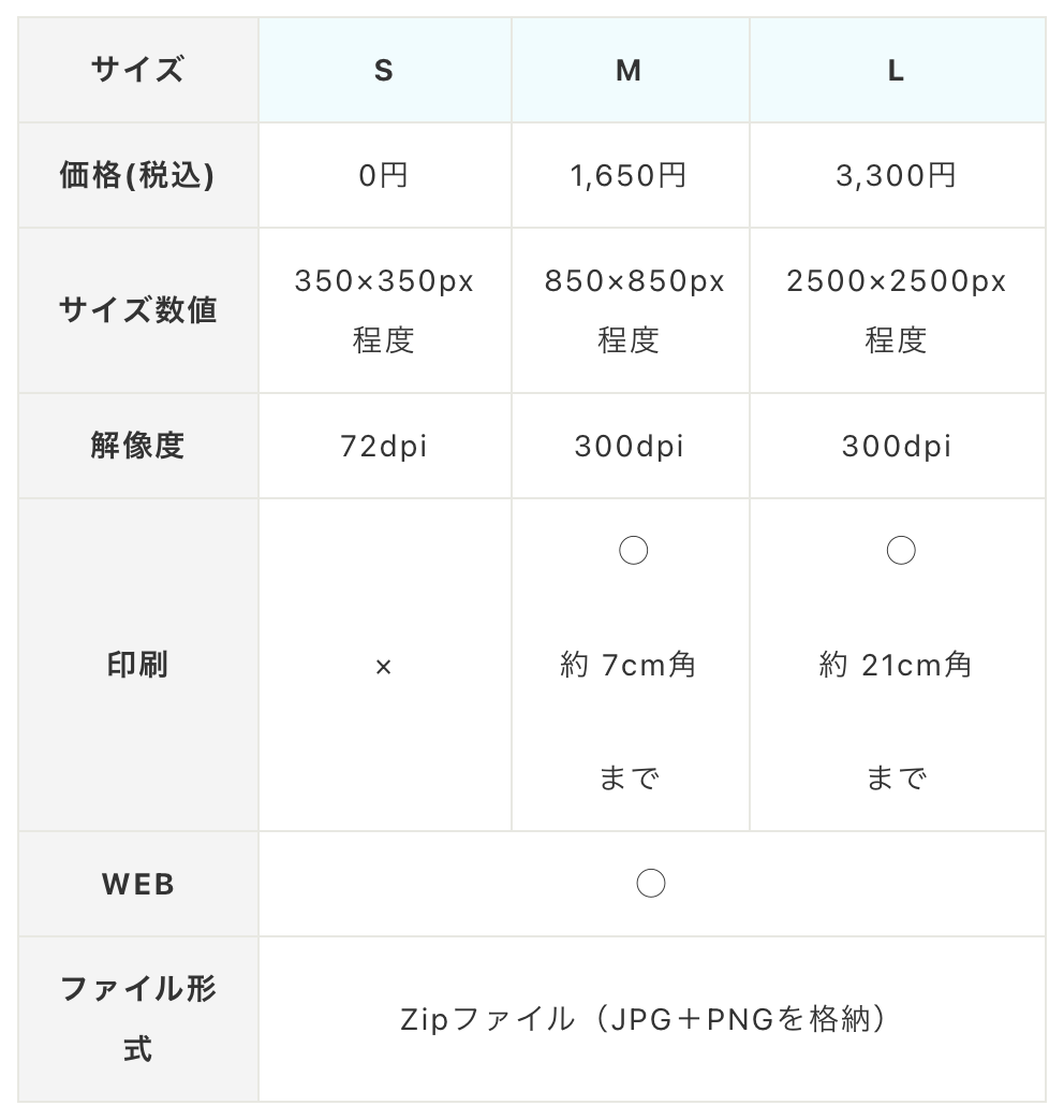 4. A4に印刷対応できる2サイズ展開。サイズ毎に同一価格
