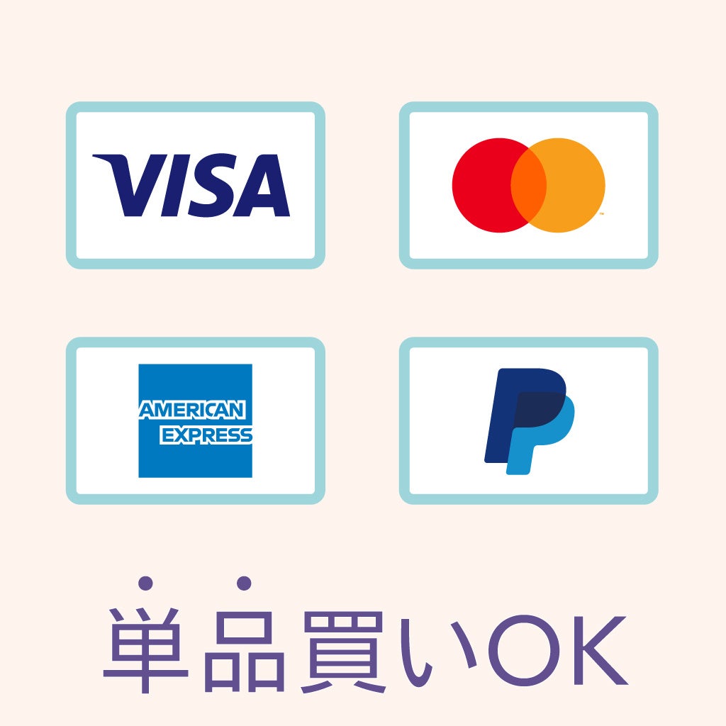 お支払い方法は、VISA・AMEX・JCB・Mastercardのクレジットカードと、Paypalの2種類の決済方法からお選びいただけます。