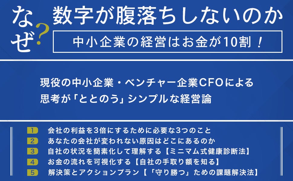 中小・ベンチャー企業のCFO代行会社 代表の著書「数字が苦手な中小企業経営者のためのファイナンス入門」(産業能率大学出版部)3月26日より発売 経営者向けに特化した新しい財務書籍