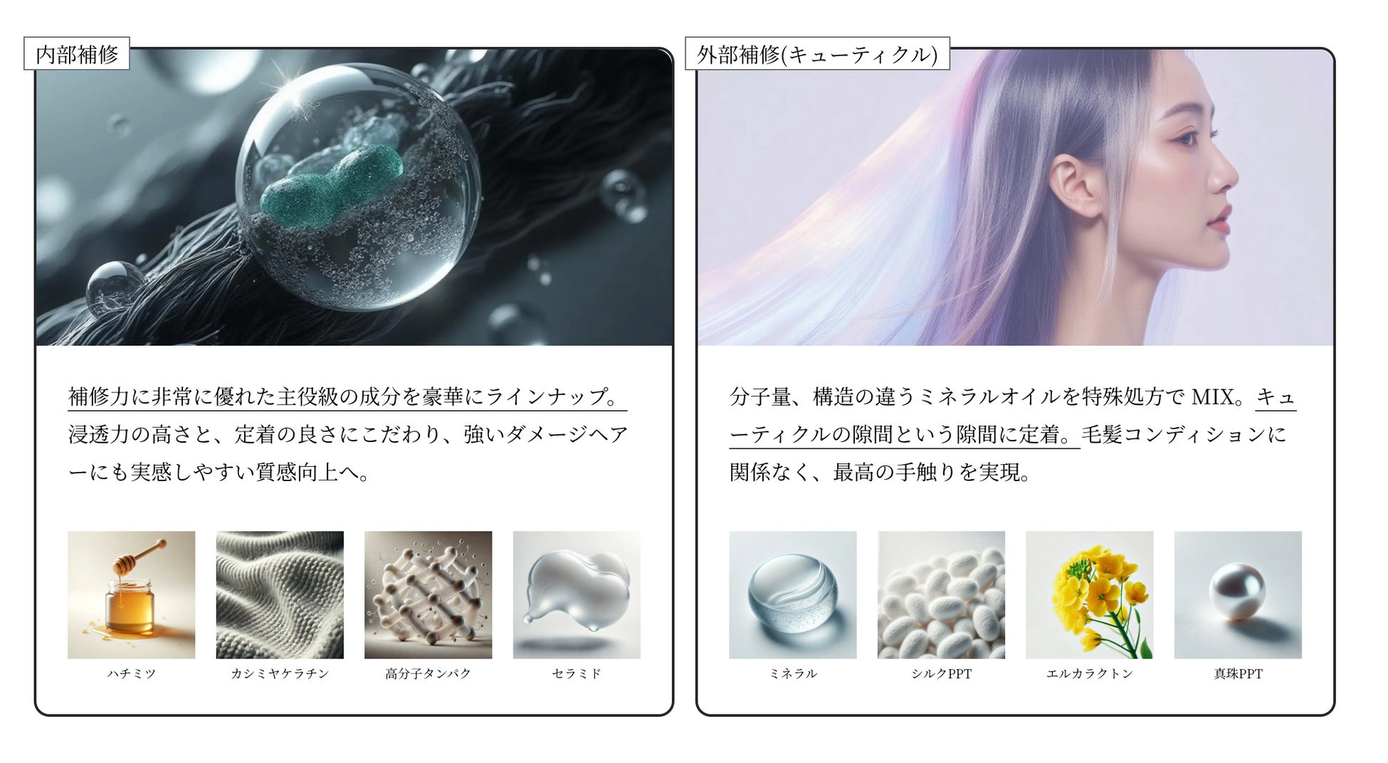 ダメージケアに特化した贅沢な補修成分配合で、複数のトリートメントを重ね付けするヘアサロンのトリートメント効果を1本のチューブに凝縮。いつでもご自宅でサロンケアを再現することができます。
