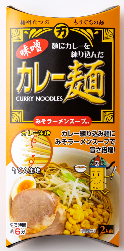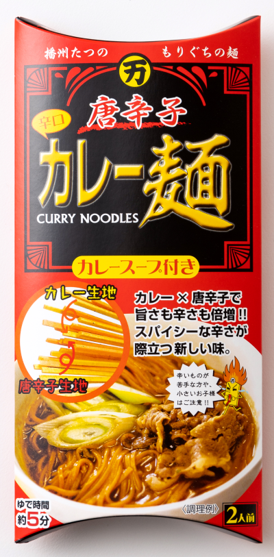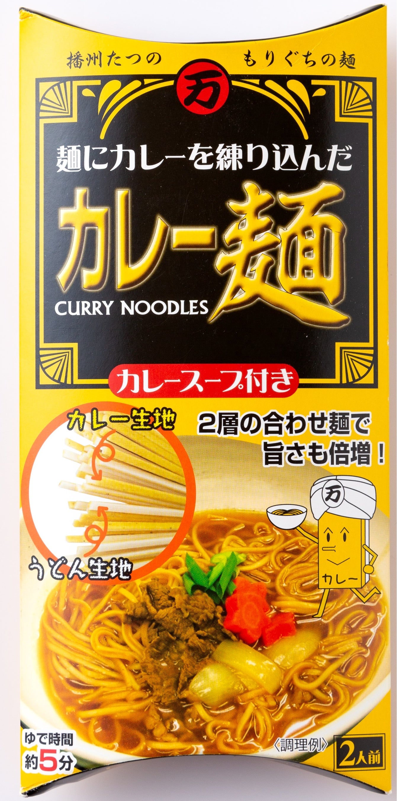 麺生地そのものにカレー粉を練り込んだ乾めんです。カレーうどんスープ付きで、麺もカレー・スープもカレーのまさにカレー好きにはたまらない人気商品です。そうめんの産地として知られる播州龍野の製麺所・森口製粉製麺の密かなロングセラーとして発売から20年近く地元中心に親しまれています。