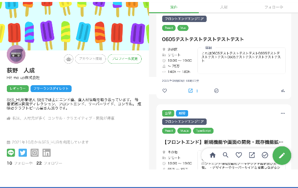 SES_HUBでは通常業務で行うようにコンスタントに案件/人材情報を登録するだけ。