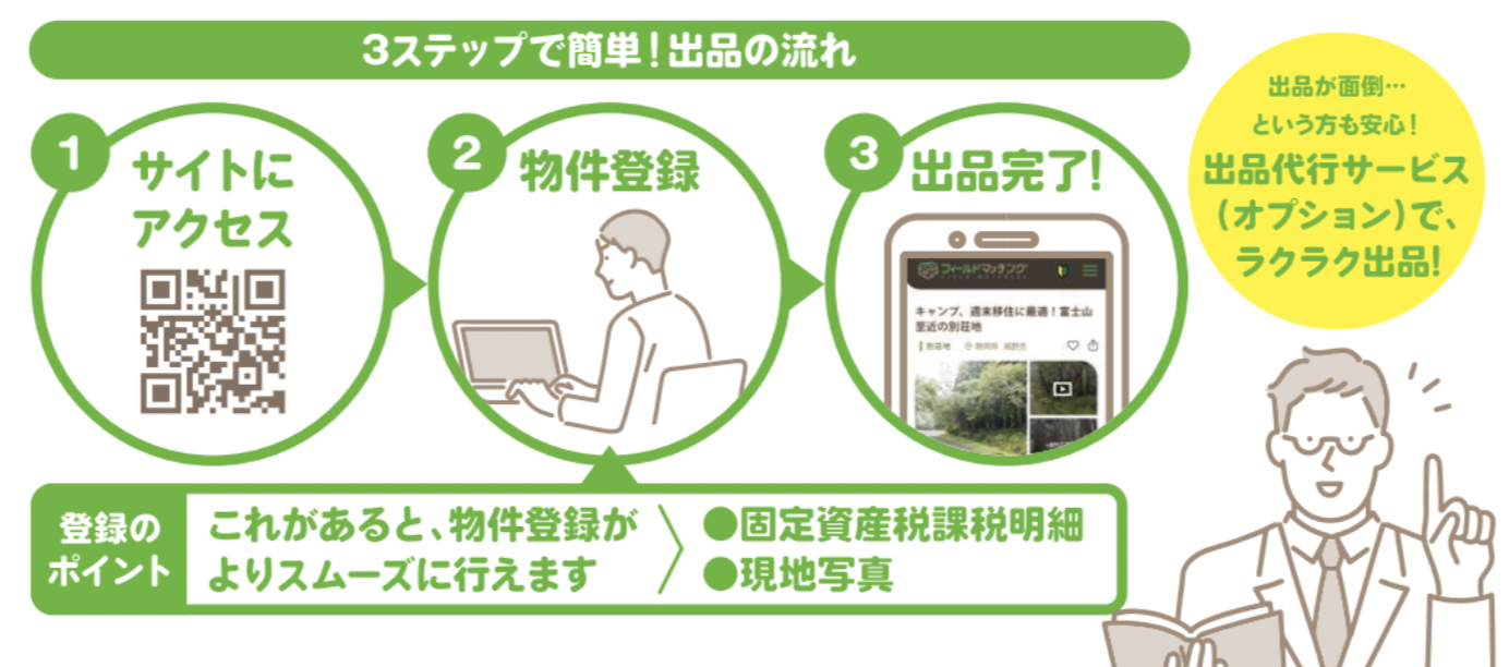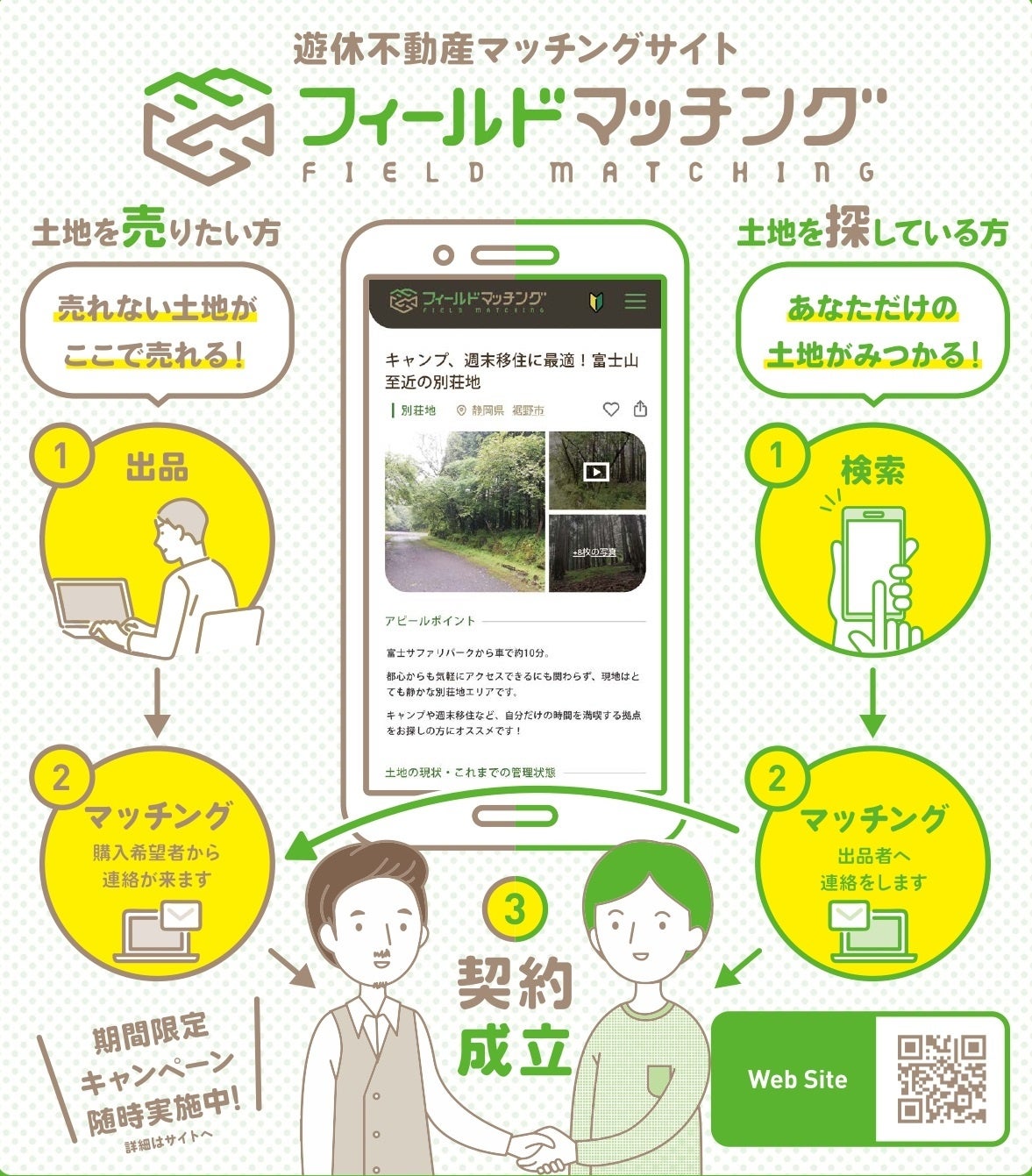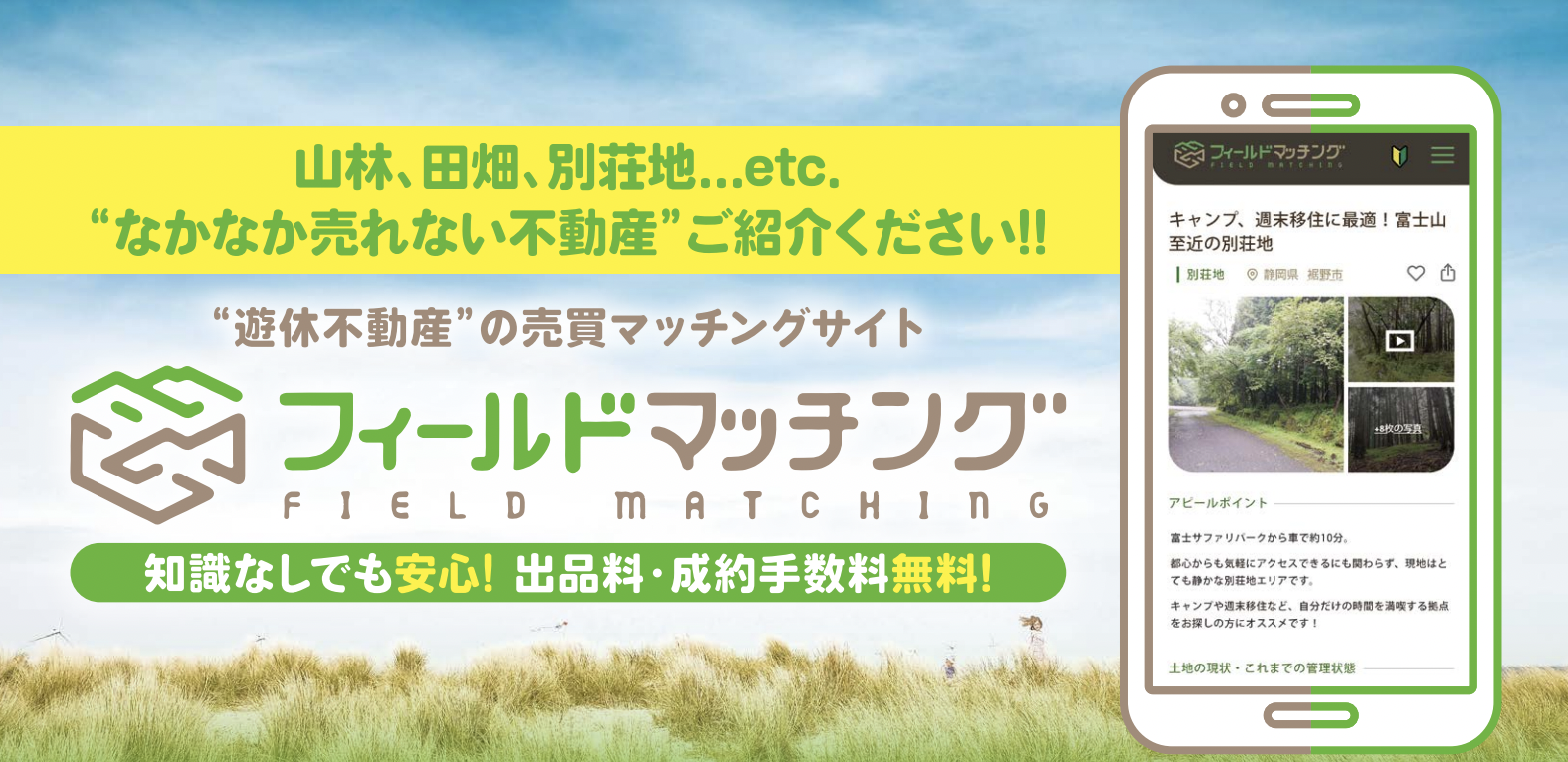 フィールドマッチングは、空き地・空き家、余っている土地などの「遊休地」を、個人間取引を実現するプラットフォームです。0円から気軽に個人間での不動産売買が可能です。