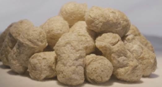唐揚げなどに最適な形状、テクスチャーです。スパイシーな香辛料を使えば、まさに本物の食感です。