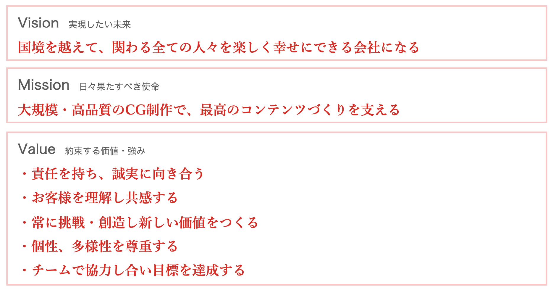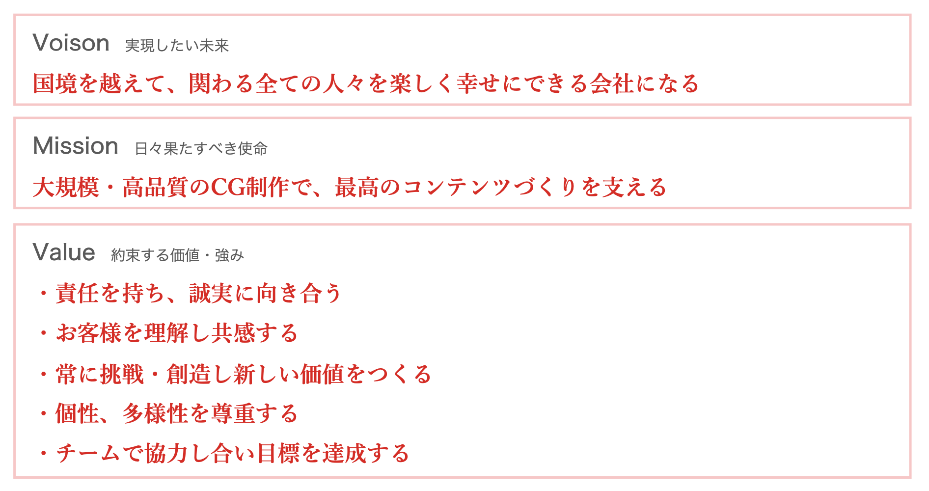 今、コンテンツビジネスの変革期にあり、様々な業界スタイルの構造変化が起きている中で、CGプロダクションのあり方も変えていかなければならない時期になっています。「CGをつくる会社から、体験をつくる会社へ」。CGを使った今までの経験、実績を活用し、あたらしい「モノヅクリ」ができる会社としてアジアのリーディングポジションをとれるようチャレンジを行っていきたいと思います。
