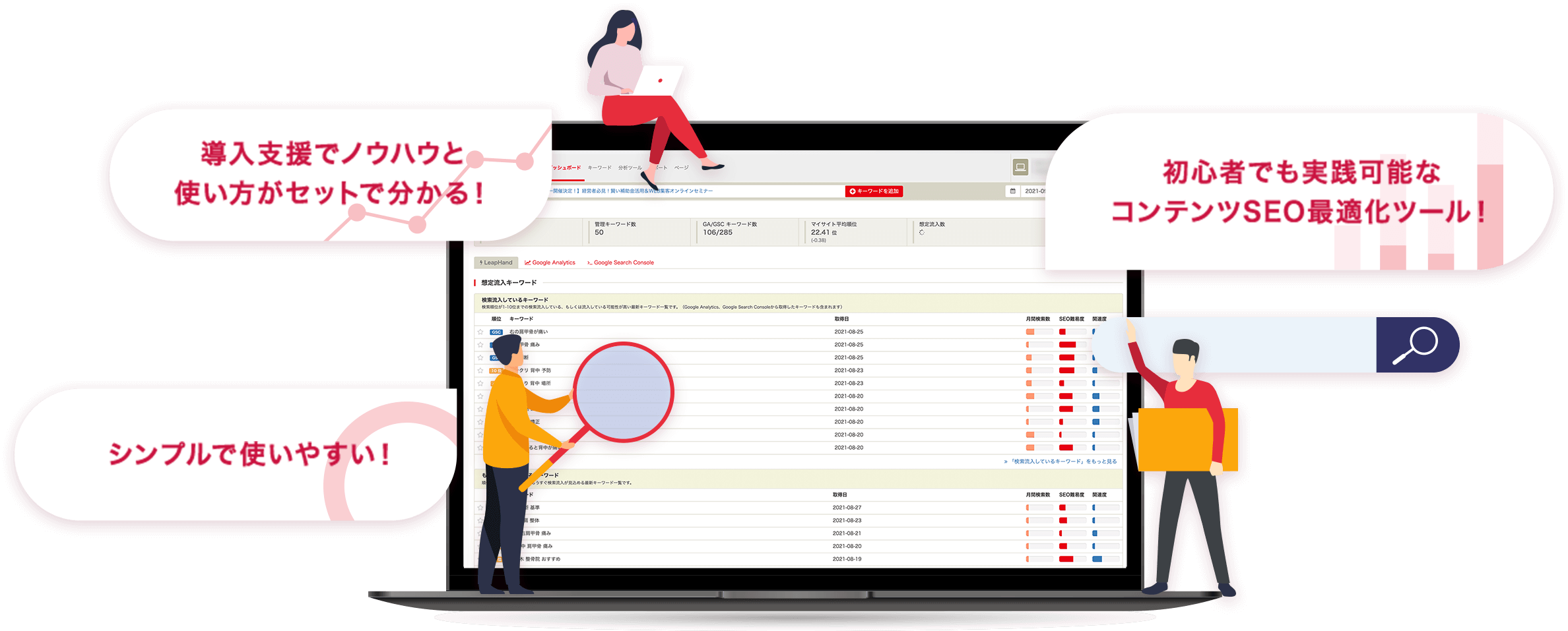 SEO対策・コンテンツマーケティングに必要な機能にだけ特化したコンテンツSEO最適化ツールです。
