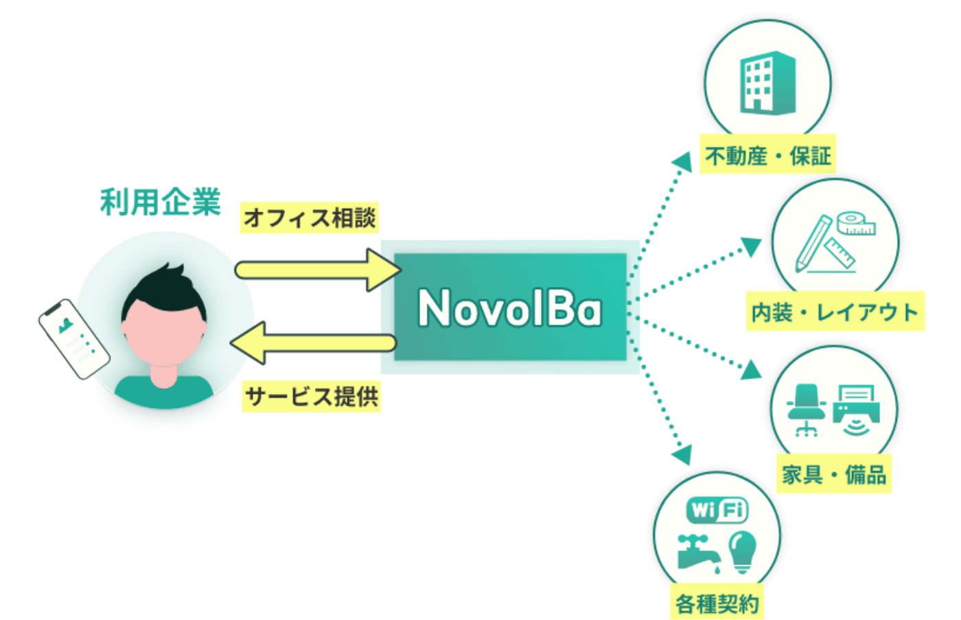 株式会社NovolBaは、「挑戦するスタートアップの成長を支える」をミッションに、オフィス構築の際に生じる様々な課題と手間を解決するオフィス空間サービス、オフィス家具のサブスクリプションサービスの提供や、スタートアップ向けのWEBメディア等を運営しています。