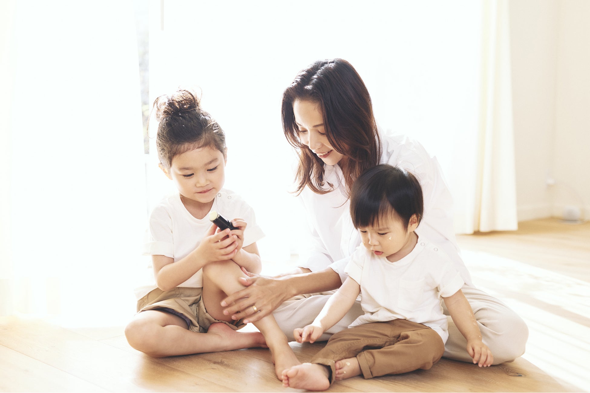 "特にバームはいつでもどこでも、子どもたち自身で使えるのがいいですね。乾燥対策もだけど、虫刺されあとにも使えるみたいで、バッグにパッと入れて持っていけるのも助かります。