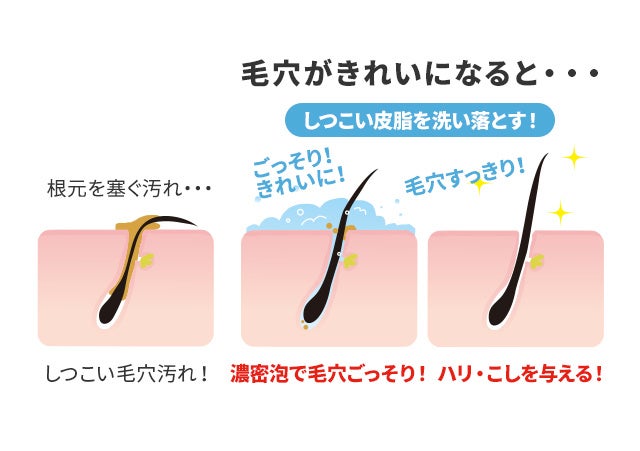 1回の洗浄体験でも、男肌や頭皮の黒ずみ※¹毛穴、角栓毛穴の汚れもゴッソリきれいに!しっとり&さっぱりした使用感※²を期待できます! (※¹肌に付着した汚れ、※²個人差があります)