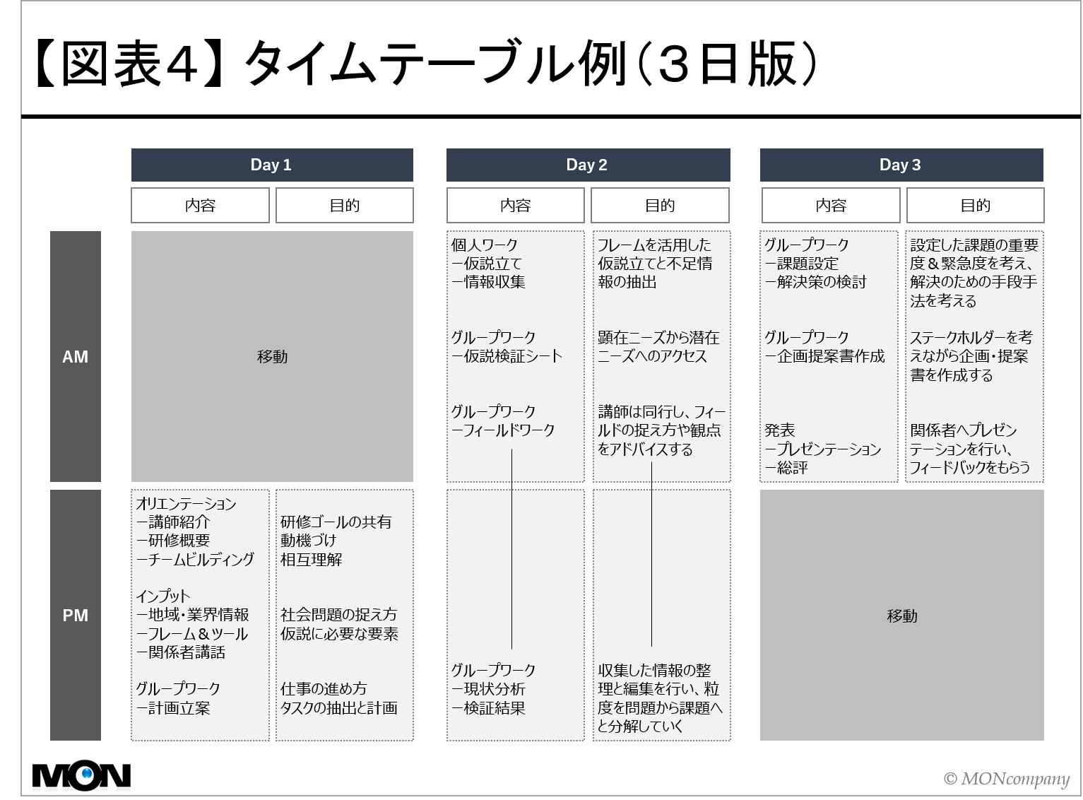 図表4は、タイムテーブル例(3日版)